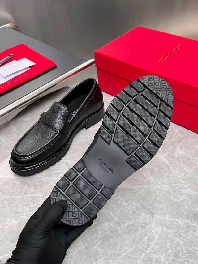 FFF 菲拉格慕Ferragamo男士精品皮鞋,这款男士乐福鞋型优雅,细节华丽,彰显端庄考究风范,适合伴您出席鸡尾酒会。面料采用进口牛皮,呈现令人惊艳的质感,内里本染细腻小胎牛皮,缀饰造型纤巧时髦!高耐磨组合大底,舒适防滑,高清凸显纹Logo徽章,彰显专业制鞋大师的斐然技艺。每一个细节都是精工细作,全套原包装, DDD 标准码39-44 38.45.46定做不退不换 ,现货 DDD