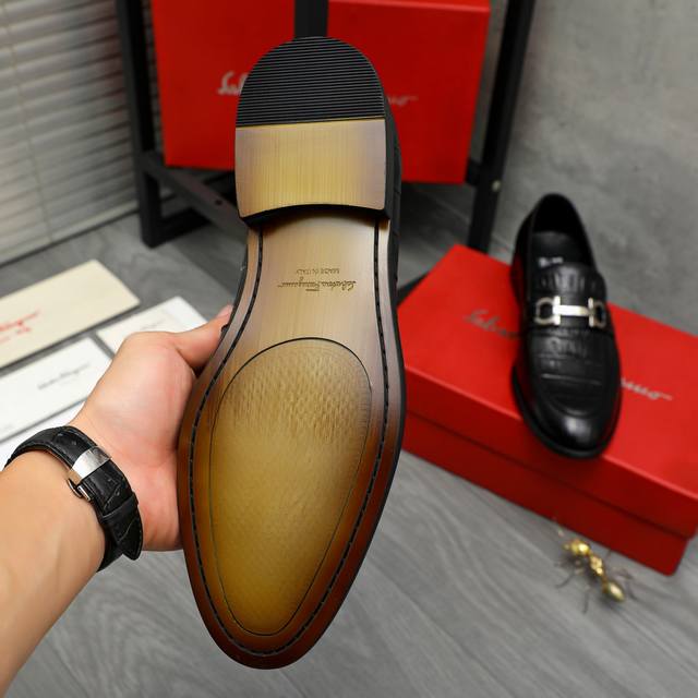 工厂p价p 实价 水染牛里 Salvatore Ferragamo 菲拉格慕 男士最新款休闲商务皮鞋 同步上市 面料采用专用进口原版荔枝纹小牛皮...