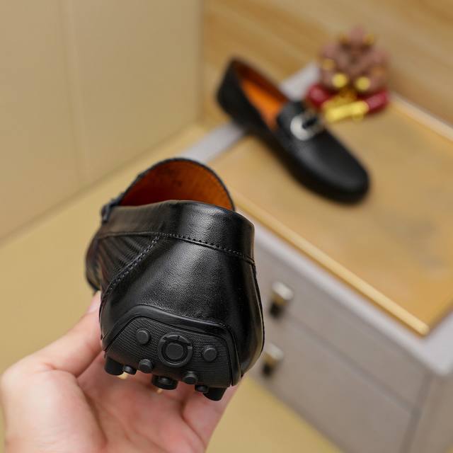 工厂p价 爱马仕 豆豆鞋系列新款来袭,男士套脚鞋。鞋面采用意大利进口压花牛皮,羊皮内里,皮质超软上脚很舒适 。版型搭配精密优美缝线,彰显低调奢华 ,舒适的鞋底设
