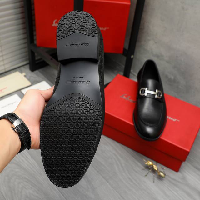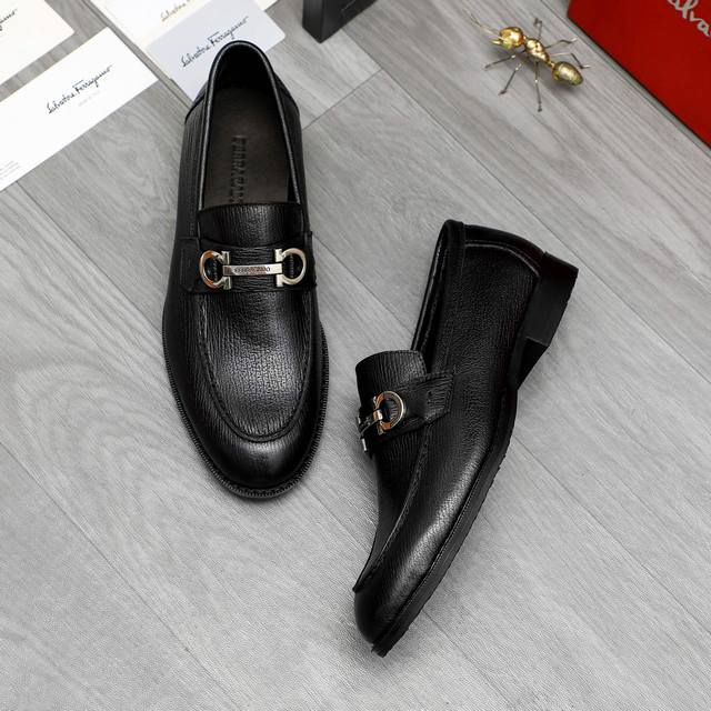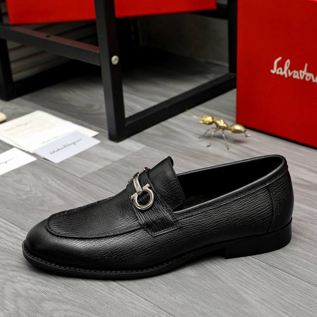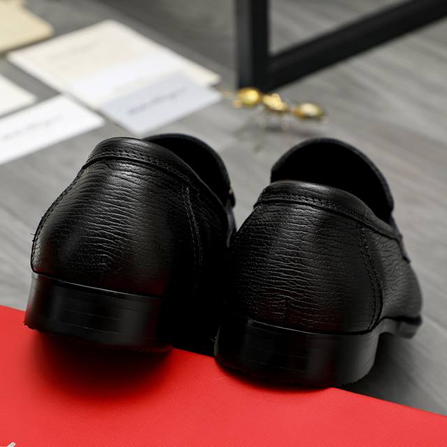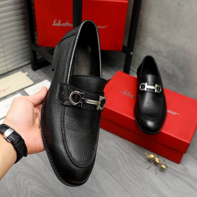 商品商标 Ferragamo 菲拉格慕 休闲皮鞋 正码码数: 38-44 45.46.47订制 商品材料 精选 进口头层荔枝纹牛皮鞋面+奢华五金扣...