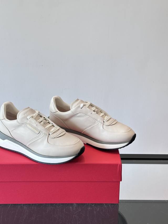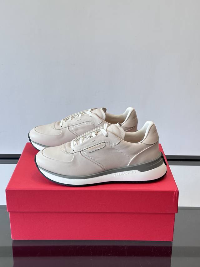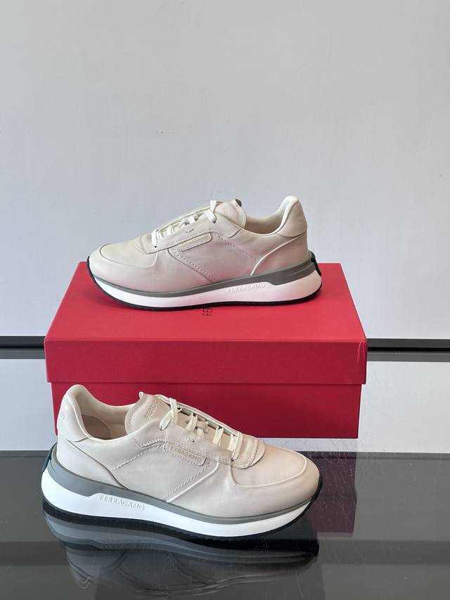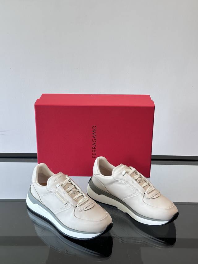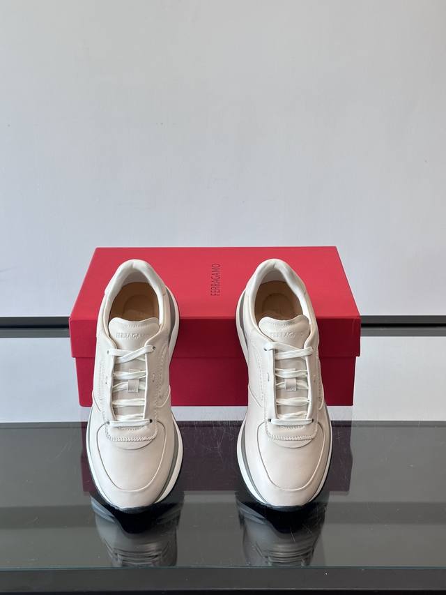 调工厂P价 男装男鞋 运动原单 F菲拉格慕男士休闲运动鞋鞋面选用柔软小牛皮,鞋舌烫金Logo超有辨识度。厚底设计,缓震效果好,长时间走路也很舒服。鞋面简约,线条