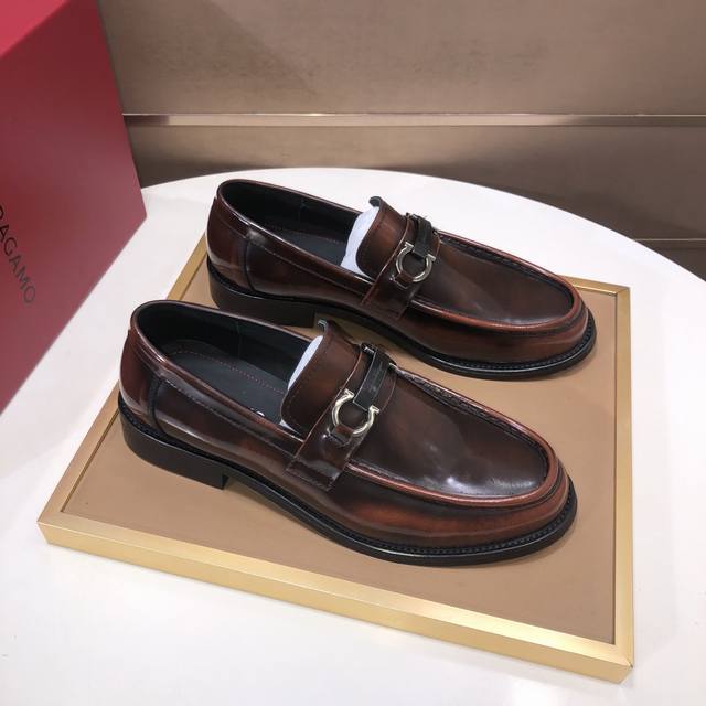 / 调工厂P价 男装男鞋 运动原单 Ferragamo 菲拉格幕 专柜最新款 原版进口开边上乘牛皮+进口牛皮内里+原版奢华金属扣+原版组合大底 对比无压力 38–4