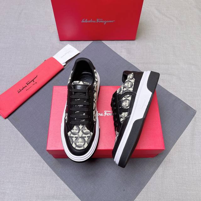/ 调工厂P价 男装男鞋 运动原单 Ferragamo 菲拉格慕 新款男士Gancini轮廓低帮休闲鞋,这款低帮休闲鞋选用麂皮及小牛皮皮革制造。其灵感源自九十年代篮