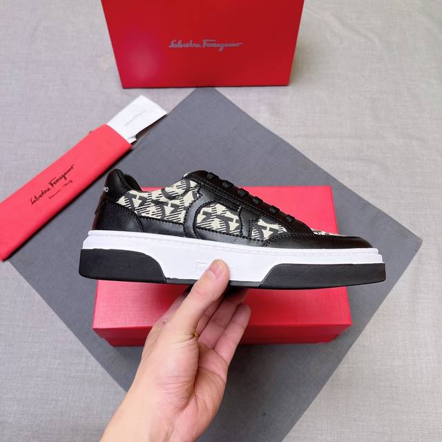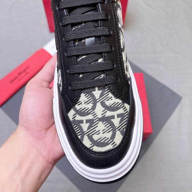 调工厂P价 男装男鞋 运动原单 Ferragamo 菲拉格慕 新款男士Gancini轮廓低帮休闲鞋,这款低帮休闲鞋选用麂皮及小牛皮皮革制造。其灵感源自九十年代篮球鞋风格,侧面Gancini嵌饰增添些许经典风范。配以轻盈橡胶鞋底,其上饰有滚花边缘和定制沟纹。织物内里及垫脚,轻盈舒适,时髦又动感,上脚舒适显高级,时尚又潮流! Size:38-45 编号004