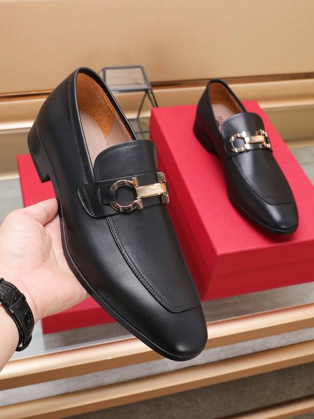 Ferragamo 最新高端顶端品牌奢侈~代购,顶级~质量。新時尚商务男鞋鞋面選用原版小牛皮牛皮内里,精细做工。原版个性时尚柔软组合耐磨防滑大底,上脚轻巧舒适,
