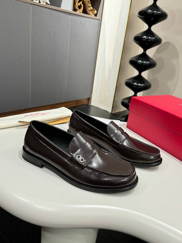 Ferragamo 菲拉格慕 经典的男士商务皮鞋,进口黑色小牛皮,牛皮内里,皮质非常柔软,原版真皮大底,码数39-44码 38 45 46 47定做 ,