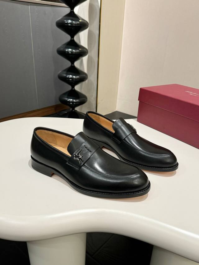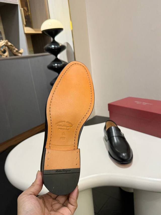 Ferragamo 菲拉格慕 经典的男士商务皮鞋,进口黑色小牛皮,牛皮内里,皮质非常柔软,原版真皮大底,码数39-44码 38 45 46 47定做 ,