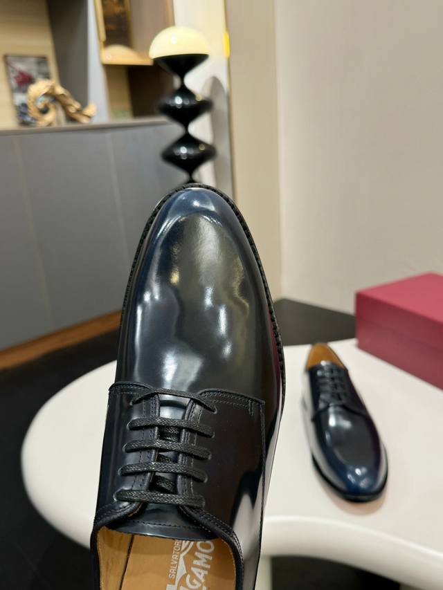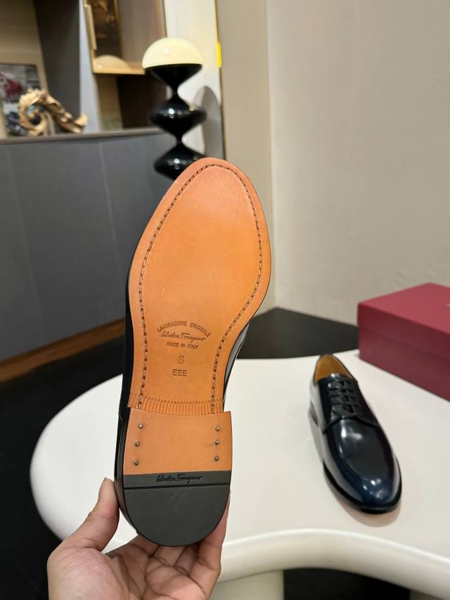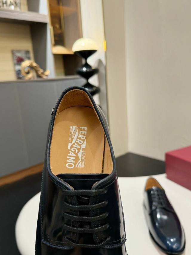 Ferragamo 菲拉格慕 经典的男士商务皮鞋,进口黑色小牛皮,牛皮内里,皮质非常柔软,原版真皮大底,码数39-44码 38 45 46 47定做 ,