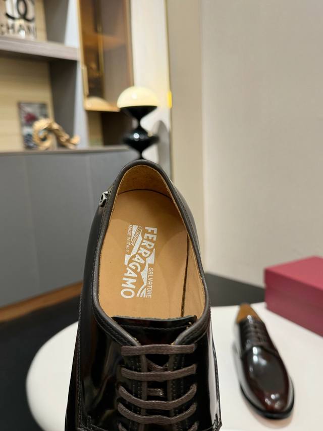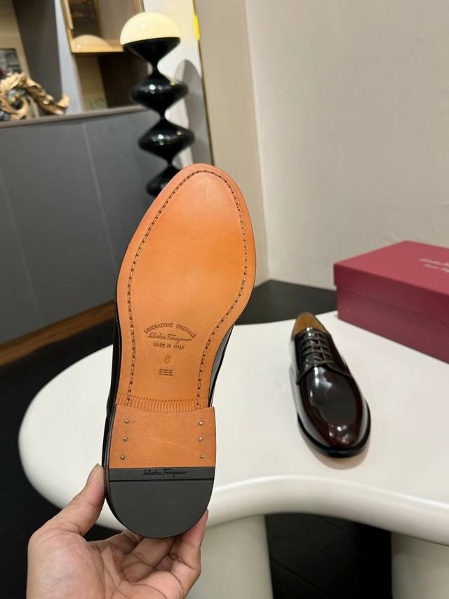Ferragamo 菲拉格慕 经典的男士商务皮鞋,进口黑色小牛皮,牛皮内里,皮质非常柔软,原版真皮大底,码数39-44码 38 45 46 47定做 ,