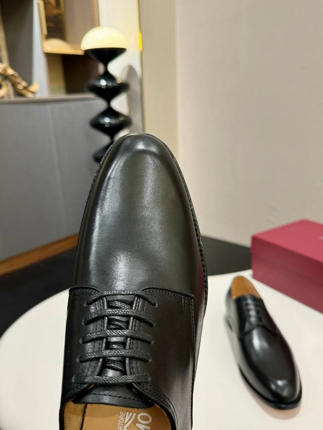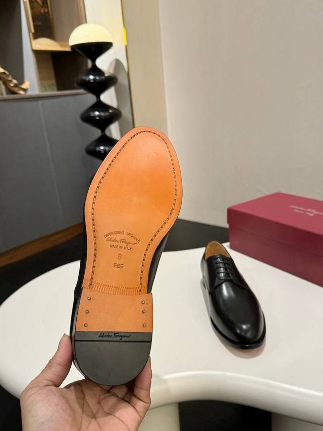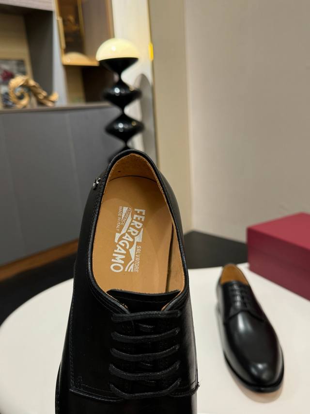 Ferragamo 菲拉格慕 经典的男士商务皮鞋,进口黑色小牛皮,牛皮内里,皮质非常柔软,原版真皮大底,码数39-44码 38 45 46 47定做 ,