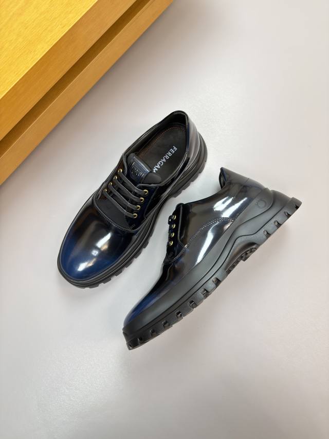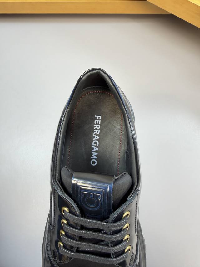Ferragamo 菲拉格慕 -高端品质 原单 正装皮鞋 -鞋面:擦色开边珠小牛皮、鞋舌空压品牌图腾、完美拼接 -内里:水染牛皮 -大底:超轻Tpu发泡;成型大