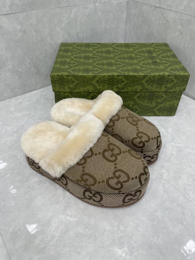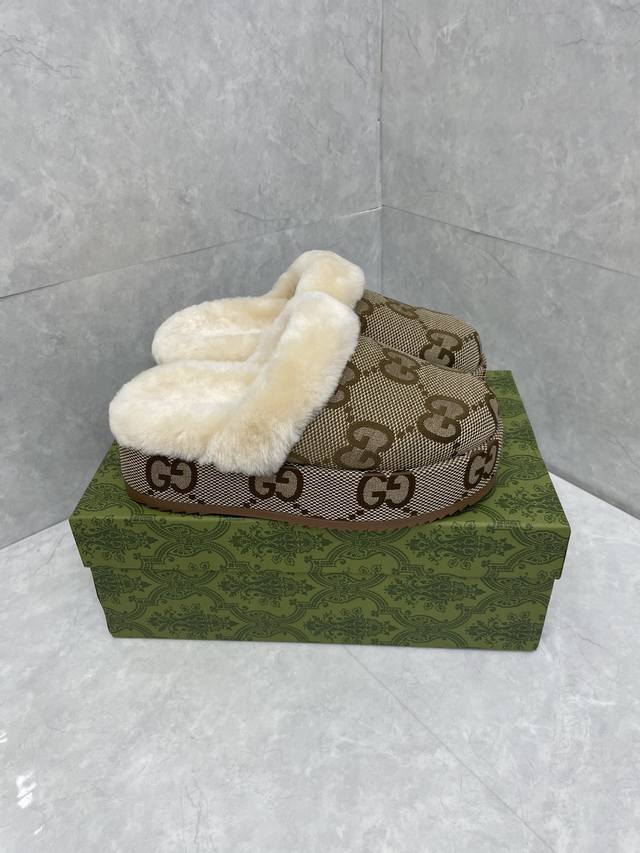 Gg 秋冬新款羊毛拖鞋 DDD Gg标识于20世纪70年代开始使用,由始于30年代的早期Gucci钻石菱格纹演化而来,是Gucci颇具代表性的传统精髓。经以明艳色调亮眼演绎,Gg标识为这款运动鞋增添瞩目焦点。鞋底运用浮雕式设计突显Guccio Gucci先生的姓名首字母图案,强调品牌深厚传承。 DDD 鞋面:Gg提花布 DDD 内里:羊皮毛一体 DDD 类型:女士拖鞋 DDD 鞋底:厚底搭配橡胶鞋底 DDD 跟高:低跟 DDD 底高:5.5厘米高 DDD 制造:意大利创作 DDD 码数:35~44码 DD