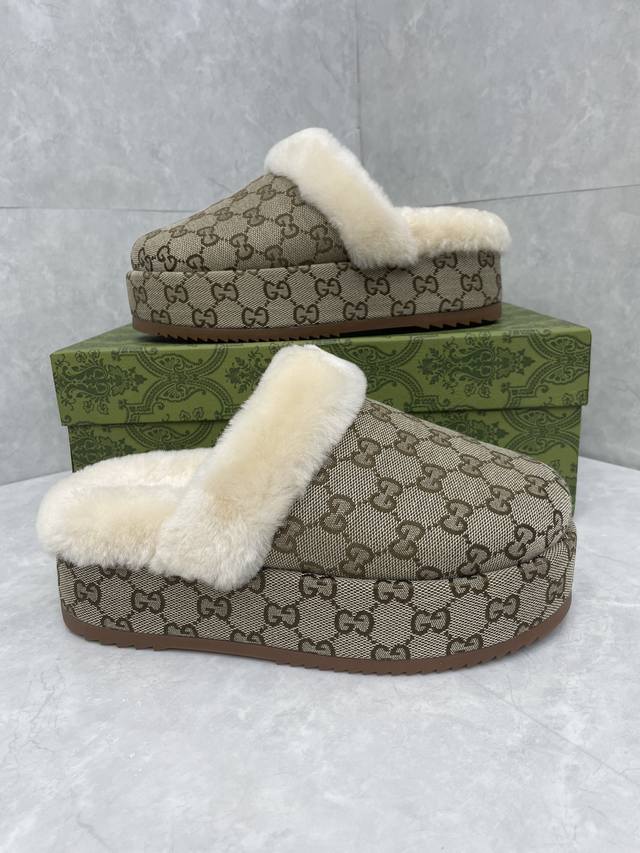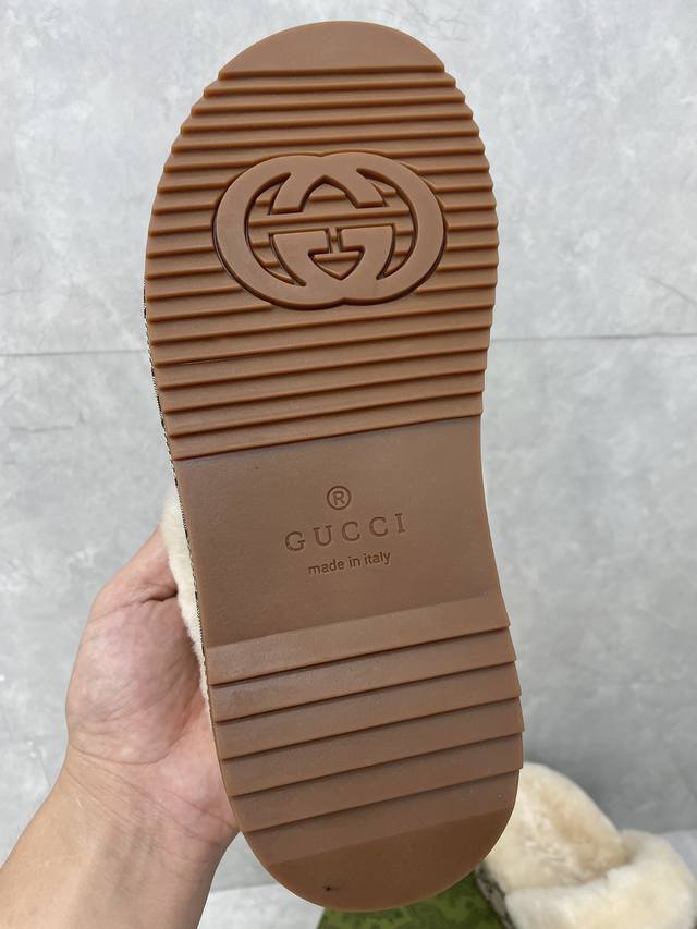 Gg 秋冬新款羊毛拖鞋 Gg标识于20世纪70年代开始使用,由始于30年代的早期Gucci钻石菱格纹演化而来,是Gucci颇具代表性的传统精髓。经以明艳色调亮眼