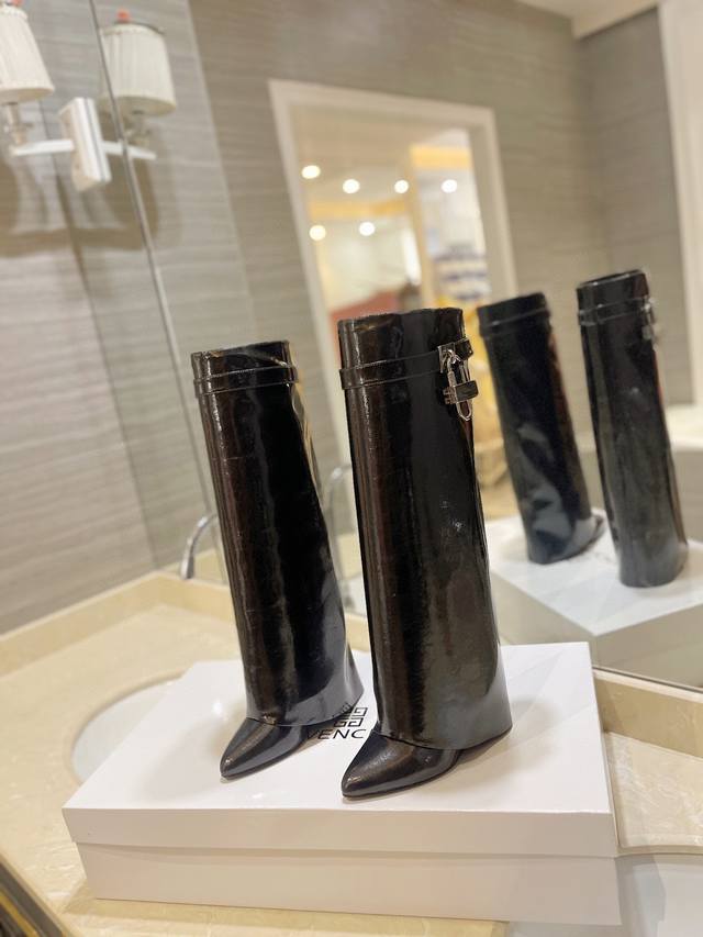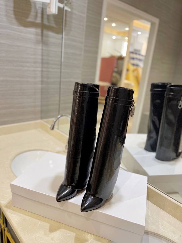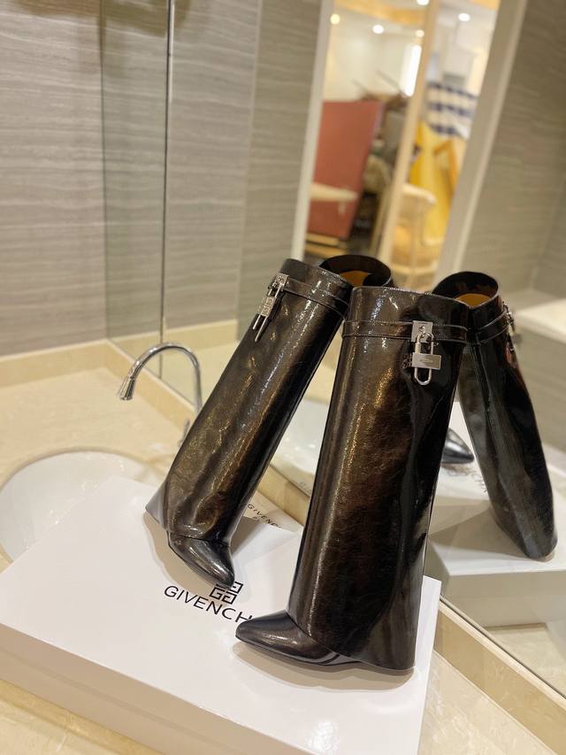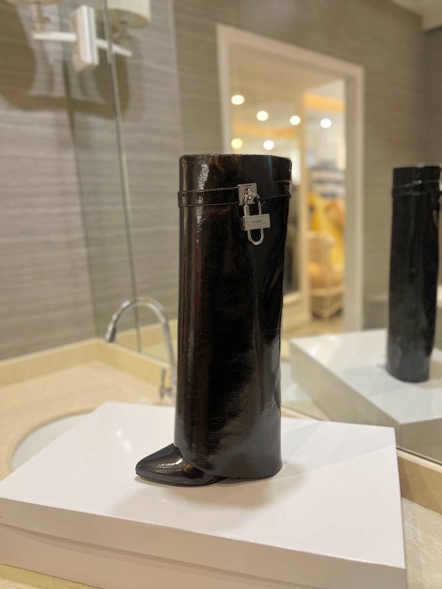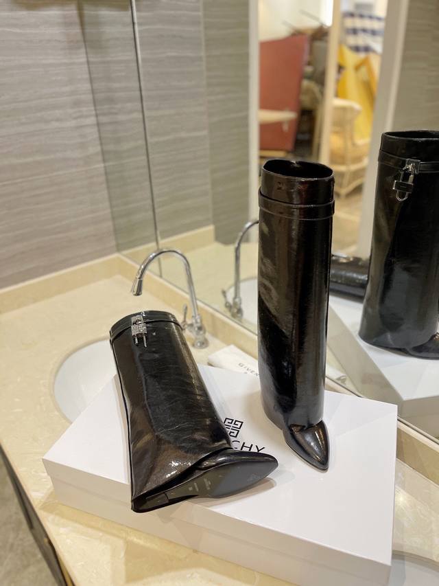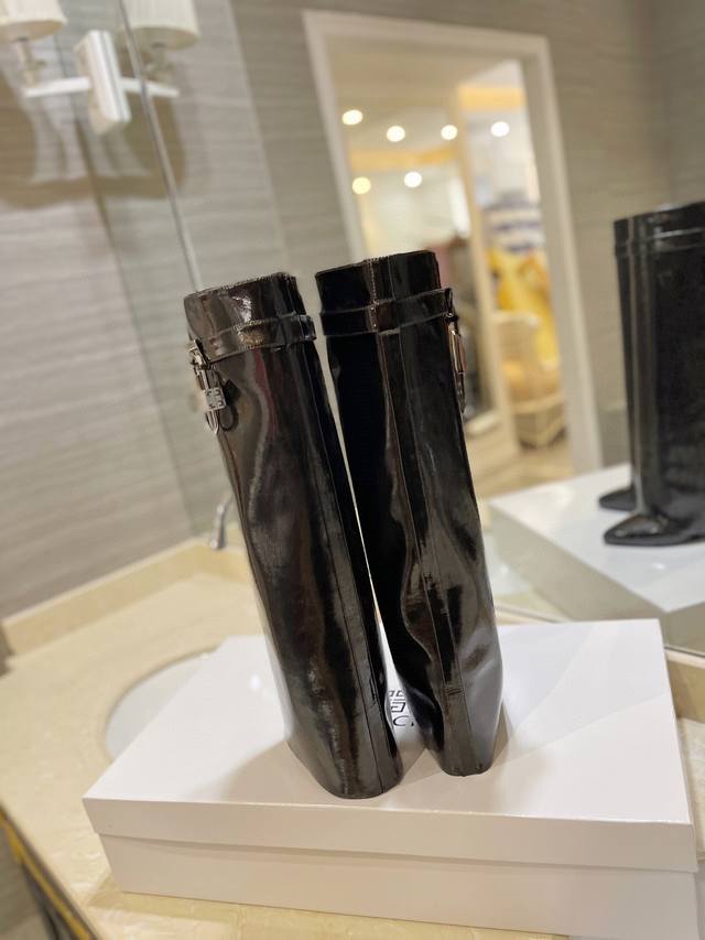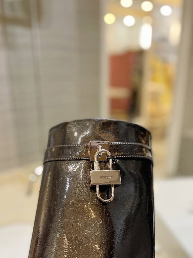 出价格P: 专柜正品级定制版本 Givenchy0 新款高跟层压皮皱长靴,市面最高版本 纪梵希 锁扣 皱漆款 风靡整个时尚圈 原版开发鞋型超级正 最高还原度鞋型