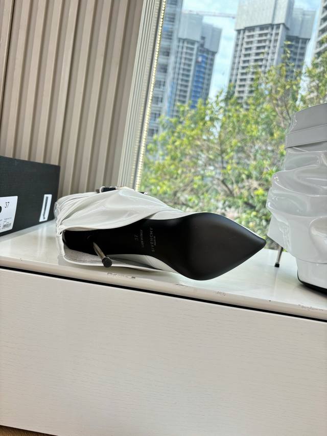 G277Givenchy纪梵希所见即所得新款时尚长靴骑士靴亮泽皮革靴原版1:1开发,腿部饰有皮革束带,搭配金属扣,侧面饰有金色不对称4G Logo金属挂锁,杏仁形鞋头 DDD 跟高:约11Cm DDD 面料:牛皮 DDD 内里:羊皮革 DDD 码数:35-42 40-42定制不退不换 DDD