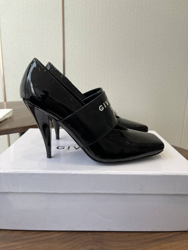 Givenchy纪梵希章若楠同款Sliced Square方头高跟鞋 裁切方头,轻松优雅气质。兼顾风格与极度舒适,弹性饰带缀”Givenchyparis“标识,