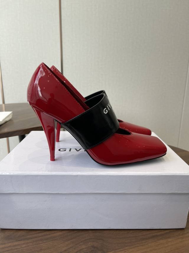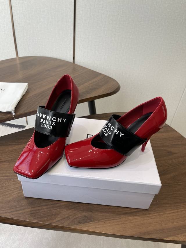 Givenchy纪梵希章若楠同款Sliced Square方头高跟鞋 裁切方头,轻松优雅气质。兼顾风格与极度舒适,弹性饰带缀”Givenchyparis“标识,