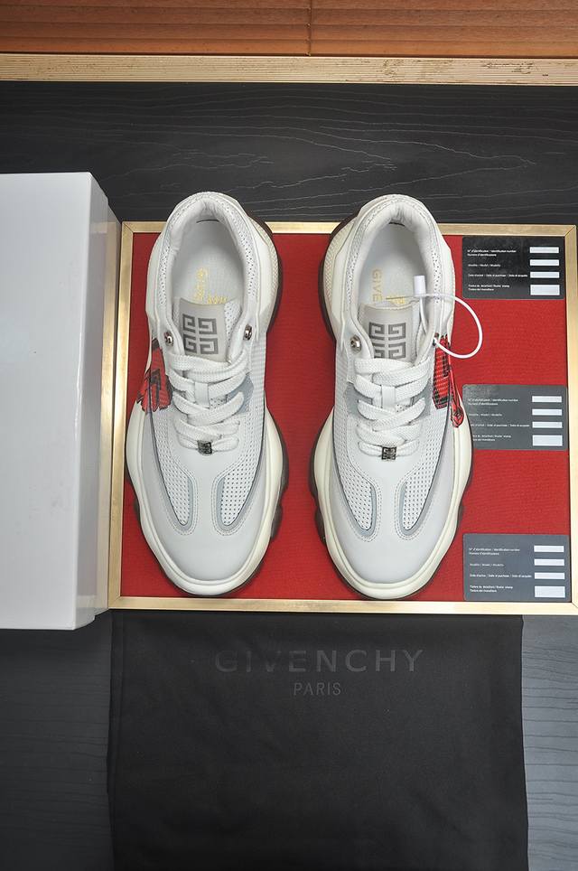 Givench*.纪梵希男士厚底休闲鞋,采用进口高弹力飞织滴胶打造,拼色设计,侧边品牌Logo装饰,立体复合式拼接缝合!舒适度高!S...