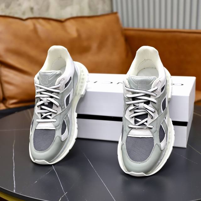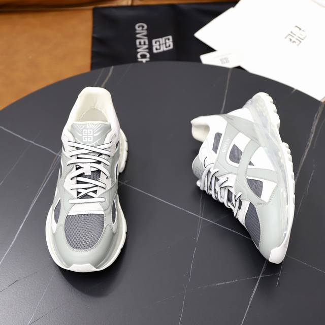 Givench*.纪梵希男士厚底休闲鞋,采用进口高弹力飞织滴胶打造,拼色设计,侧边品牌Logo装饰,立体复合式拼接缝合!舒适度高!S...