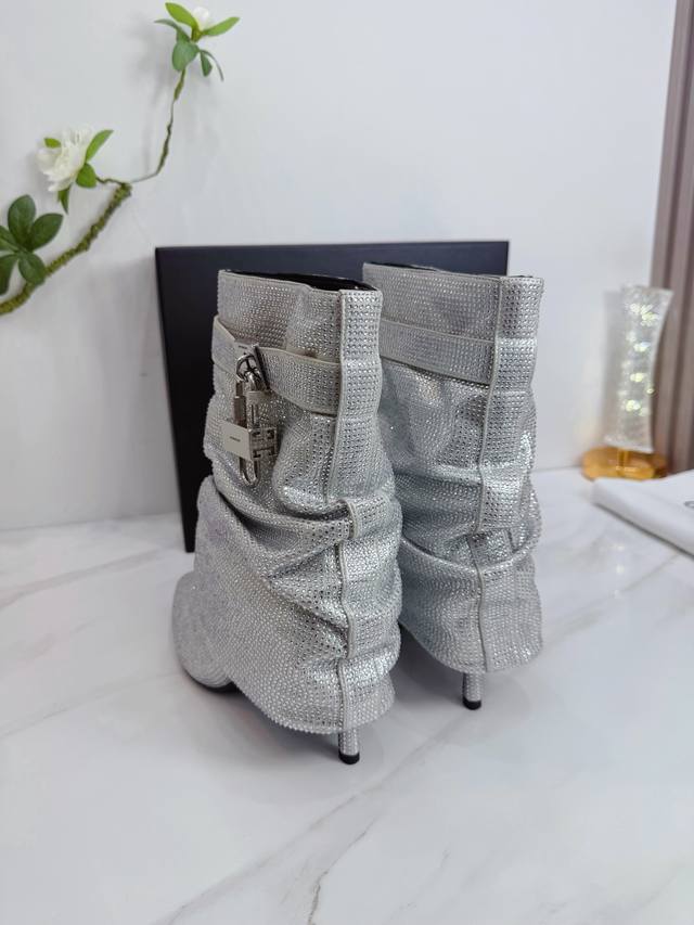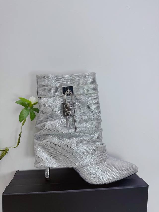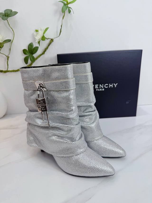 出厂 2025 Sss 重磅推出Givenchy 纪梵希 春夏新款单鞋靴子 品牌标志性的一如既往地呈现复古优雅,各种造型都能轻松驾驭。 1鞋面:真丝布烫钻 2内