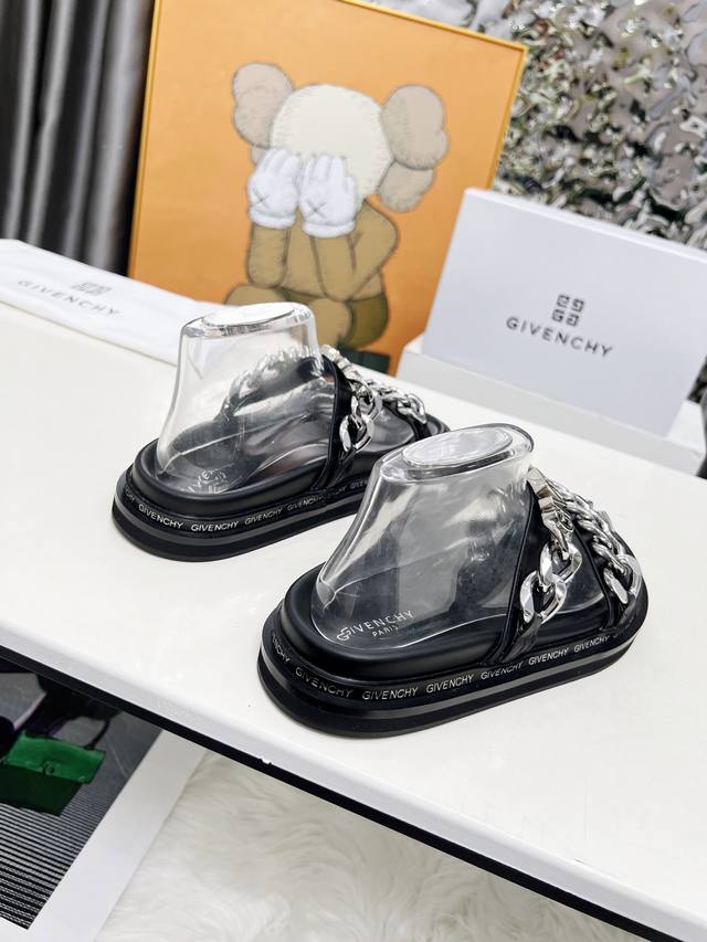 工厂P价 女装女鞋 运动原单 纪梵希链条风格,时尚潮流,时尚达人专配凉鞋、简约不简单。面料:黑色牛皮 内里:羊皮,大底:橡胶材质。码数5-41