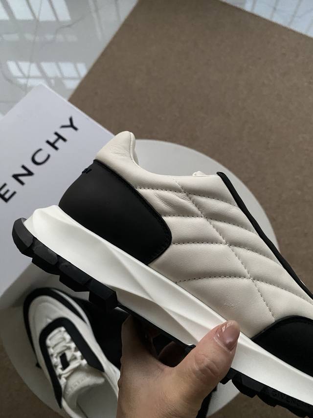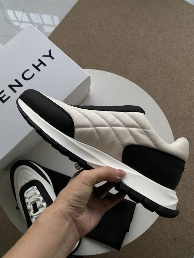 / 新款Giv创新低帮运动鞋 鞋面牛皮搭配同色系菱格牛皮,同系配色鞋带 鞋舌和后跟饰以Giv~Chy Logo,侧面饰以Givenchy Logo饰带,采用透明耐磨