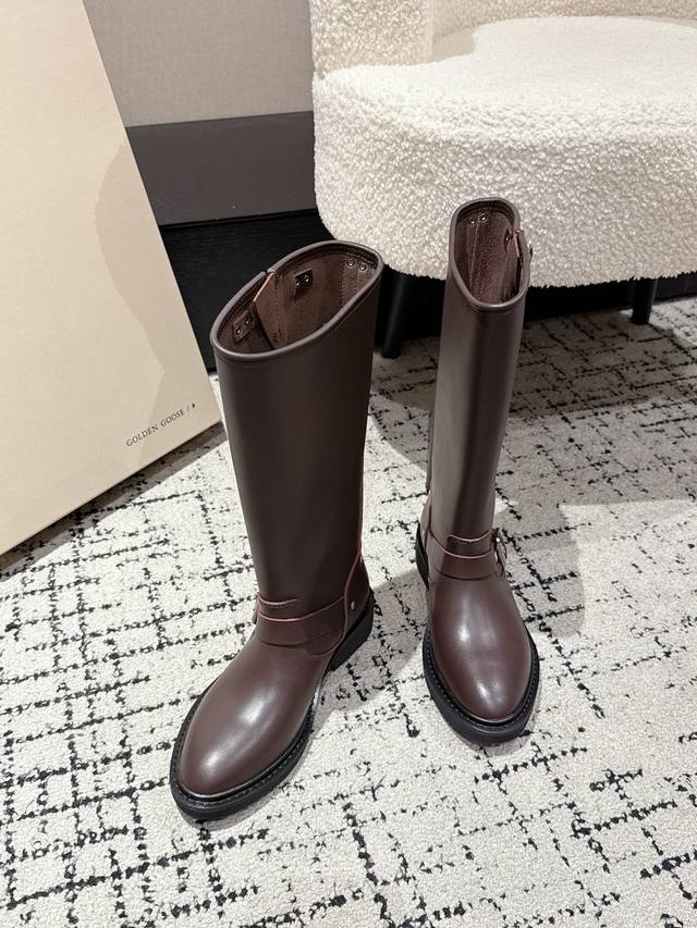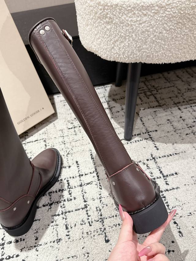 顶级版本 Ggdb Golden Goose 25 秋冬最新 复古 长筒 骑士靴 采用优质真皮制作,质感细腻且耐用,能呈现出良好的光泽感。属于高筒骑士靴款式,鞋