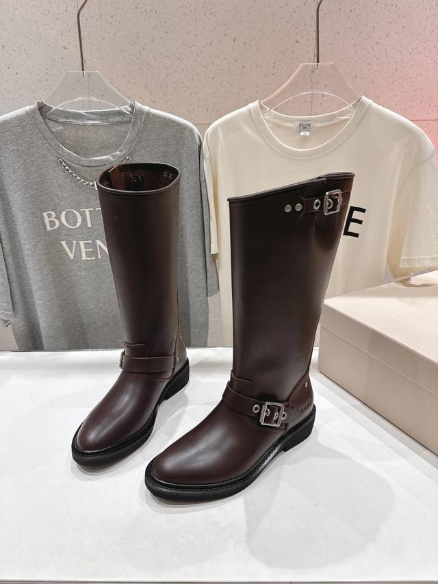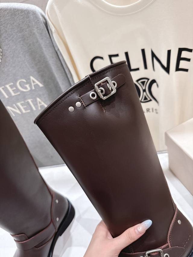 高版本出厂 Ggdb Golden Goose F028 25Ss复古长筒靴骑士靴 采用优质真皮制作,质感细腻且耐用,能呈现出良好的光泽感。属于高筒骑士靴款式,鞋身带有金属扣饰元素,增添了复古与酷感风格;鞋型利落,靴筒高度适中,对腿部线条有较好的修饰作用。 可搭配黑色皮夹克、黑色紧身裤,再配上金属质感的配饰,打造出机车风的酷帅造型。深棕色款可搭配格纹西装、高腰直筒牛仔裤,营造出复古摩登的氛围。 鞋面:进口头层小牛皮 内里:牛皮 大底:原版开模橡胶底+真皮沿条组合大底 码数:35-40 40定制