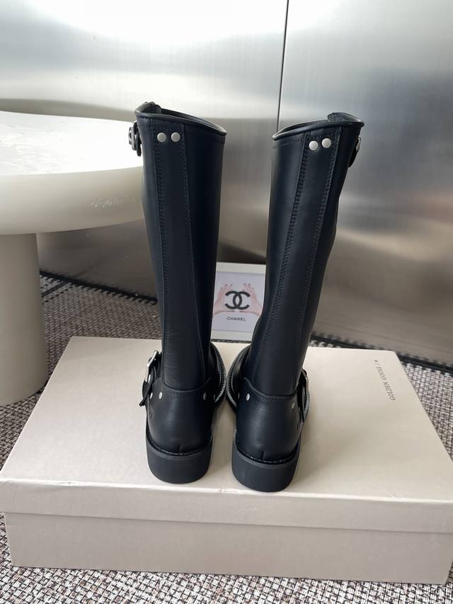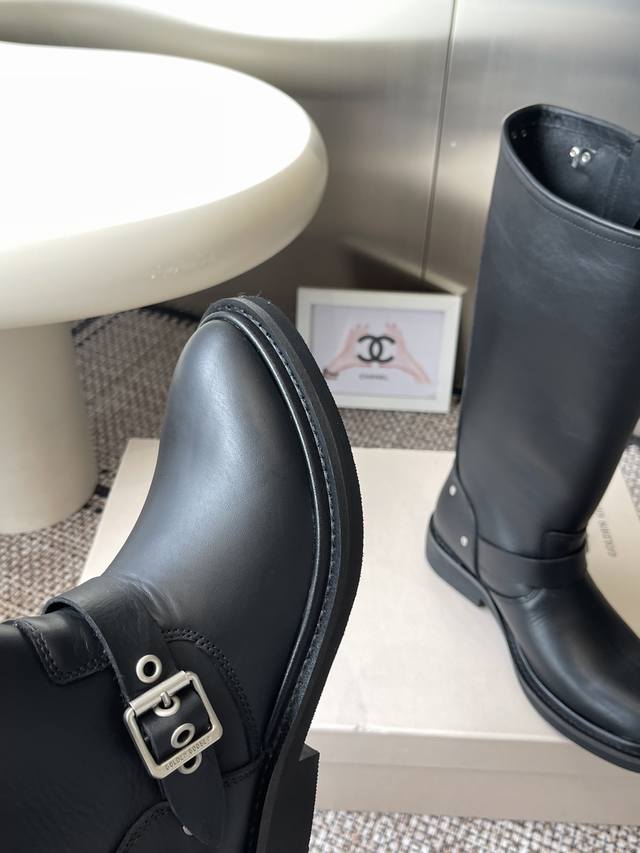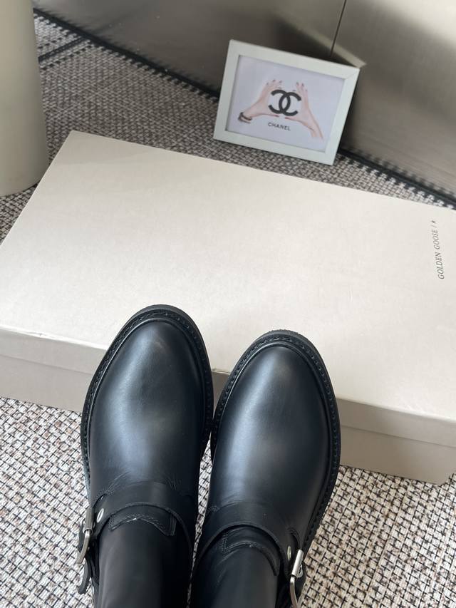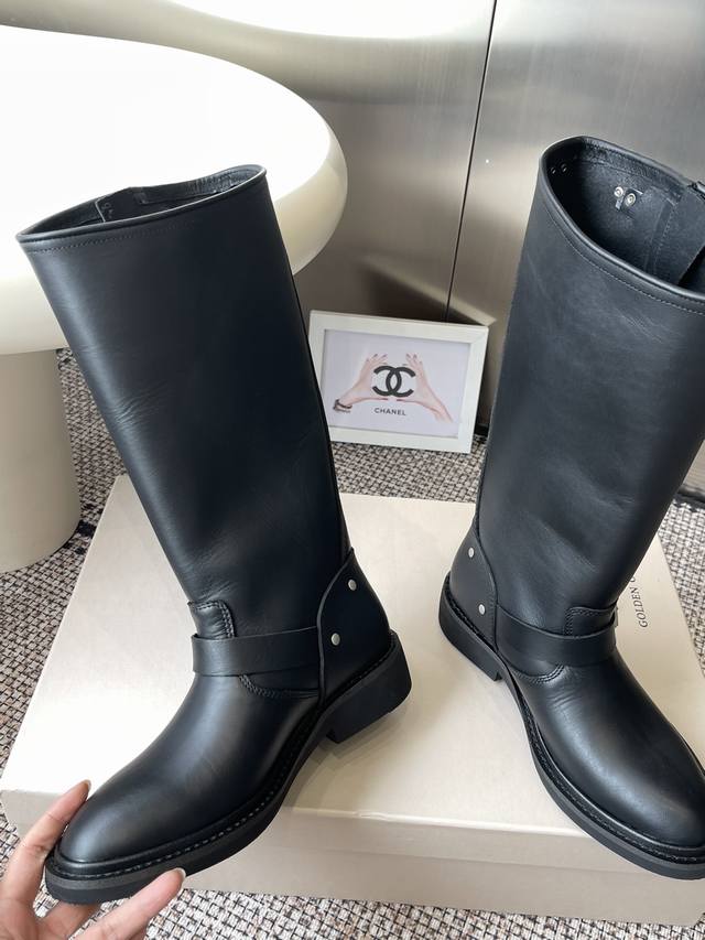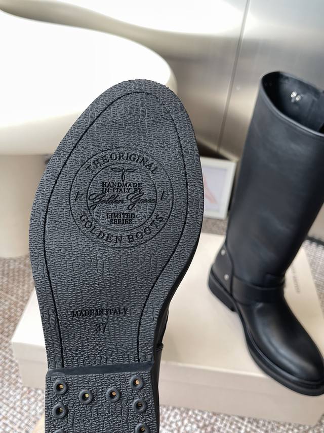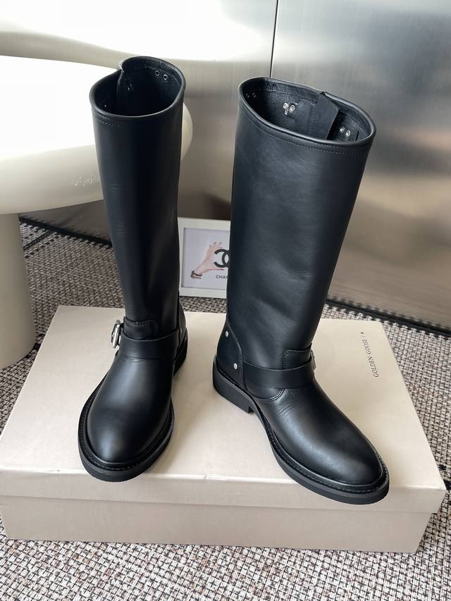 Ggdb Golden Goose 25Ss秋冬新款 复古长筒靴骑士靴 采用优质真皮制作 质感细腻且耐用 能呈现出良好的光泽感 属于高筒骑士靴款式 鞋身带有金属扣饰元素 增添了复古与酷感风格 鞋型利落 靴筒高度适中 对腿部线条有较好的修饰作用 搭配黑色皮夹克 黑色紧身裤 再配上金属质感的配饰 打造出机车风的酷帅造型 深棕色款可搭配格纹西装 高腰直筒牛仔裤 营造出复古摩登的氛围 鞋面进口头层小牛皮 内里牛皮 原版开模橡胶底+真皮沿条组合大底 码数:35-40 40定做不退换