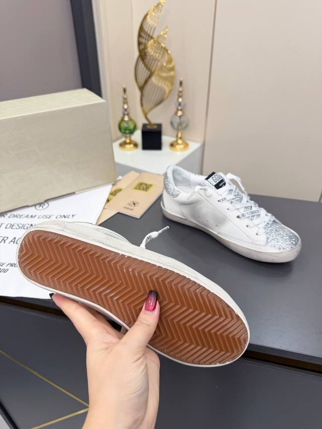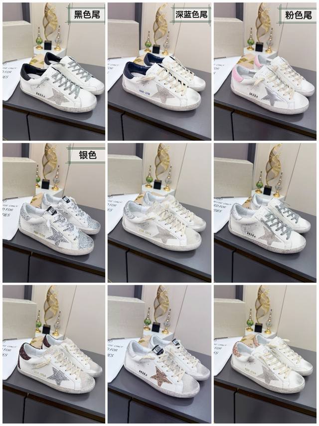出厂价p 最经典款星星作旧小脏鞋 Ddd Golden Goose Ggdb百搭休闲鞋双色底,追求“完美的不完美”、品牌标志性的Lived-In 岁月留痕,做旧处理和独特的星星元素,是意大利手作工艺与经典外观的完美结合,不仅好穿辨识度高,表达了一种真实自由的态度,不刻意去追求一尘不染,随性不羁的痕迹反而更舒适自在! Ddd 面料:进口头层牛皮 Ddd 内里:羊皮拼接毛巾里 Ddd 大底:1:1开模Tpu大底 Ddd 鞋垫:内增高3.5Cm活动乳胶牛皮鞋垫 Ddd 码数:女码 35--40 Ddd 码数:男