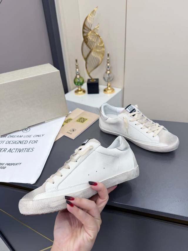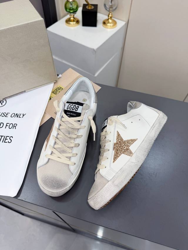 出厂价pp 最经典款星星作旧小脏鞋 Ddd Golden Goose Ggdb百搭休闲鞋双色底,追求“完美的不完美”、品牌标志性的Lived-In 岁月留痕,做旧处理和独特的星星元素,是意大利手作工艺与经典外观的完美结合,不仅好穿辨识度高,表达了一种真实自由的态度,不刻意去追求一尘不染,随性不羁的痕迹反而更舒适自在! Ddd 面料:进口头层牛皮 Ddd 内里:羊皮拼接毛巾里 Ddd 大底:1:1开模Tpu大底 Ddd 鞋垫:内增高3.5Cm活动乳胶牛皮鞋垫 Ddd 码数:女码 35--40,出厂价pp18
