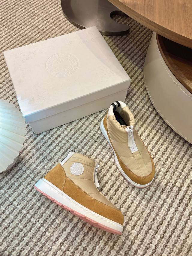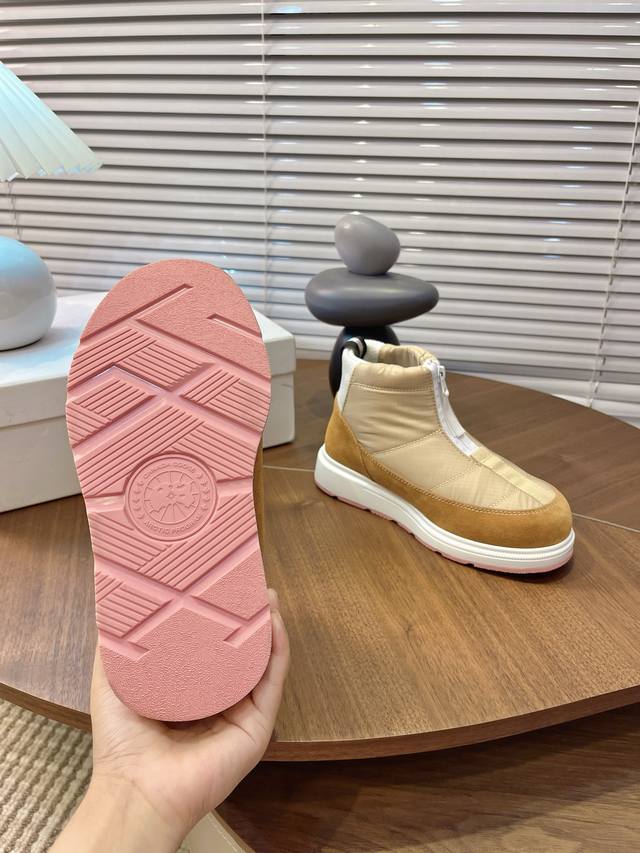 实价: 张婧仪同款 Canada Goose加拿大鹅冬季加厚防水防滑厚底保暖雪地靴 超火的秋冬保暖首选品牌 羽绒布鞋面 防水防风又保暖 羊毛尼内里舒适又透气,现在正当季,剁手党抓紧囤起来,冬天穿着鞋子每天跑跑跳跳,最重要就是鞋底要轻便!超轻便,舒适感Max,真的是踩屎感十足 经得住考验的品质,买鞋不用太多选择,真不需要!就是争取到最高性价比,冬季雪地里这样一双足以 大底:耐寒Pu加橡胶组合防滑大底 码数35-40