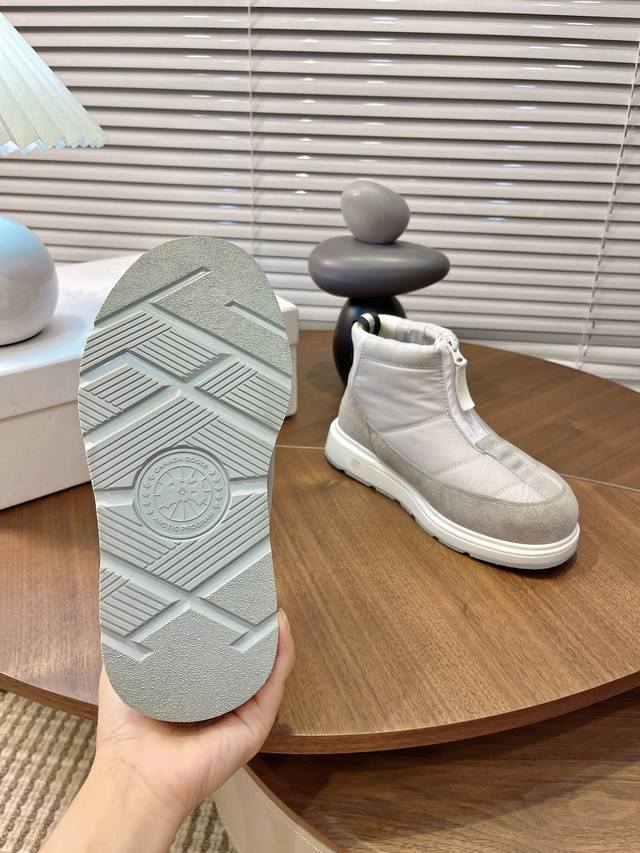 实价: 张婧仪同款 Canada Goose加拿大鹅冬季加厚防水防滑厚底保暖雪地靴 超火的秋冬保暖首选品牌 羽绒布鞋面 防水防风又保暖 羊毛尼内里舒适又透气,现在正当季,剁手党抓紧囤起来,冬天穿着鞋子每天跑跑跳跳,最重要就是鞋底要轻便!超轻便,舒适感Max,真的是踩屎感十足 经得住考验的品质,买鞋不用太多选择,真不需要!就是争取到最高性价比,冬季雪地里这样一双足以 大底:耐寒Pu加橡胶组合防滑大底 码数35-40