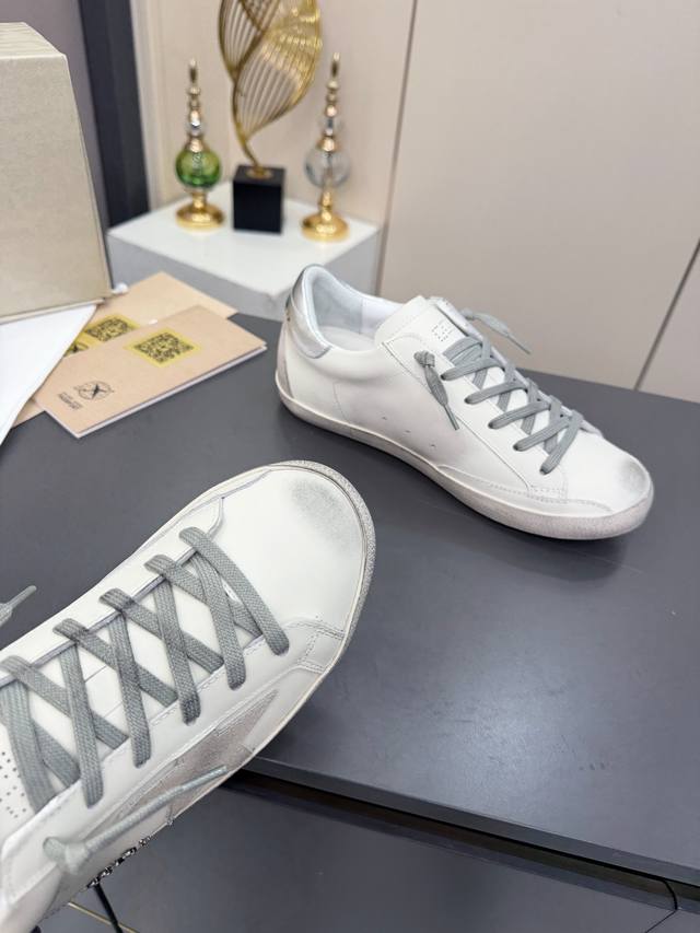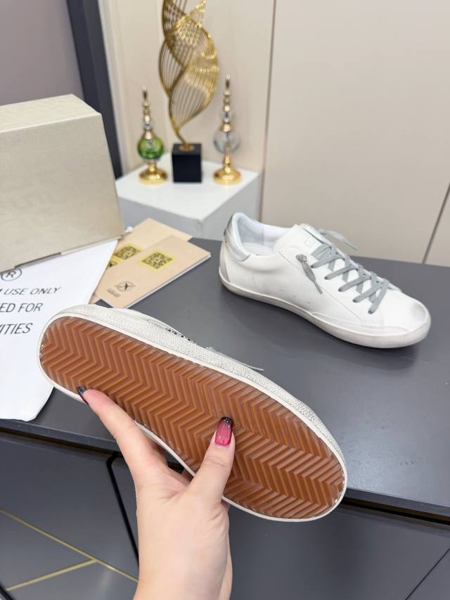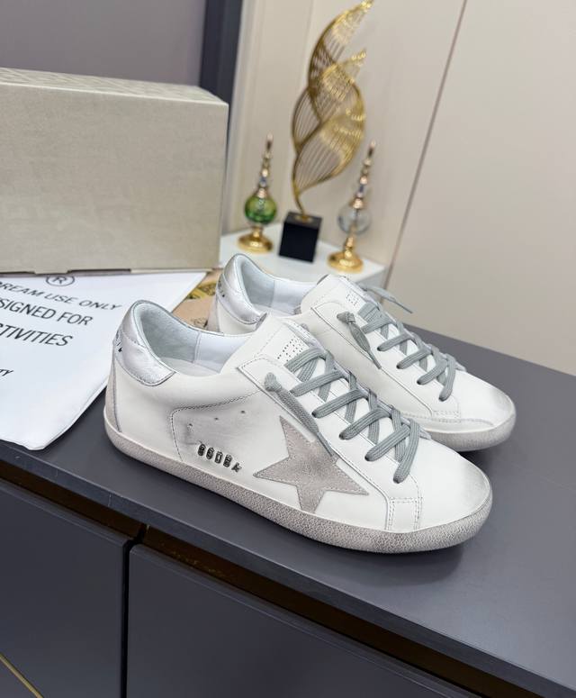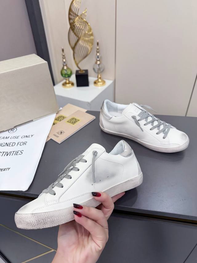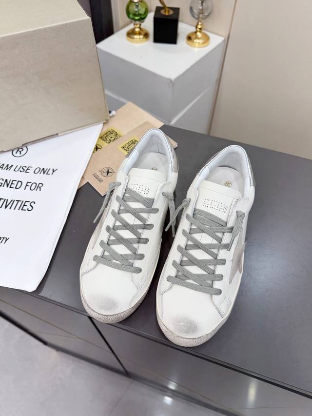 实价: 最经典款星星作旧小脏鞋 Ddd Golden Goose Ggdb百搭休闲鞋双色底,追求“完美的不完美”、品牌标志性的Lived-In 岁月留痕,做旧处理和独特的星星元素,是意大利手作工艺与经典外观的完美结合,不仅好穿辨识度高,表达了一种真实自由的态度,不刻意去追求一尘不染,随性不羁的痕迹反而更舒适自在! Ddd 面料:进口头层牛皮 Ddd 内里:羊皮拼接毛巾里 Ddd 大底:1:1开模Tpu大底 Ddd 鞋垫:内增高3.5Cm活动乳胶牛皮鞋垫 Ddd 码数:女码 35--40 Ddd 码数:男码