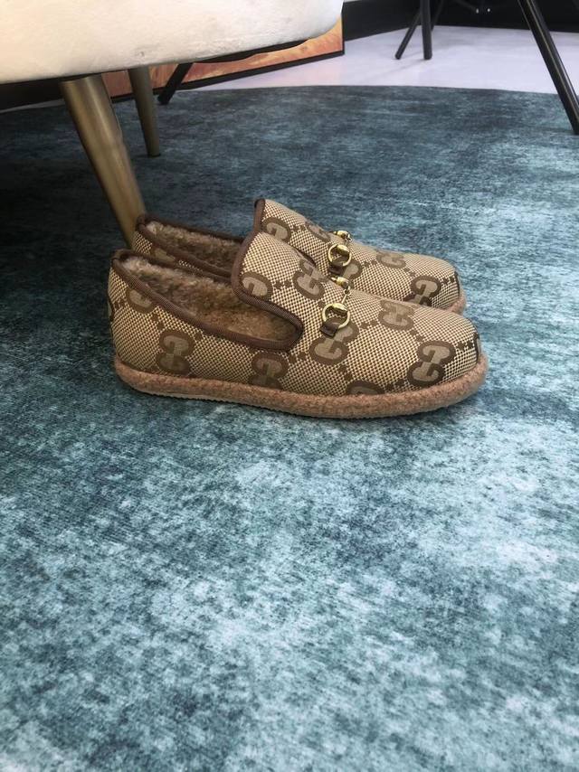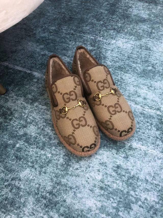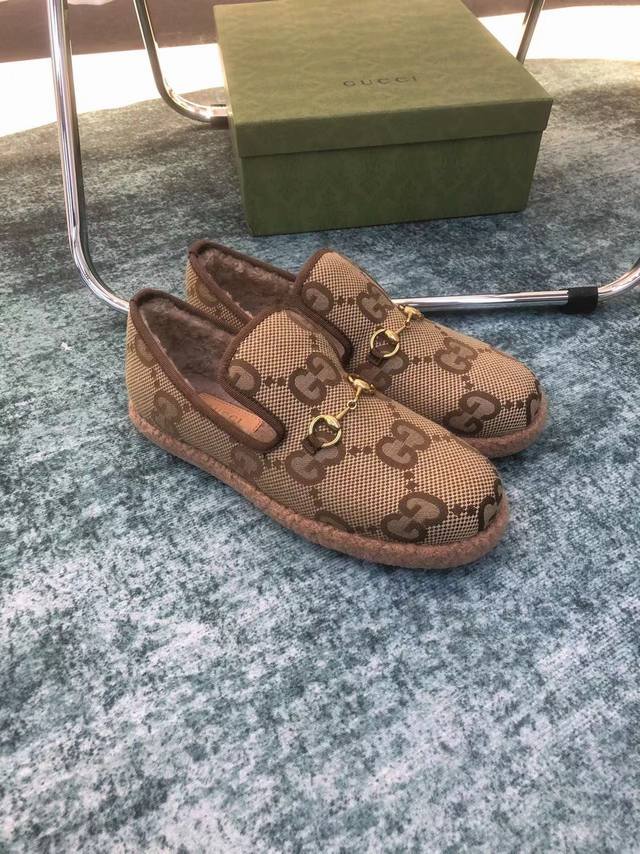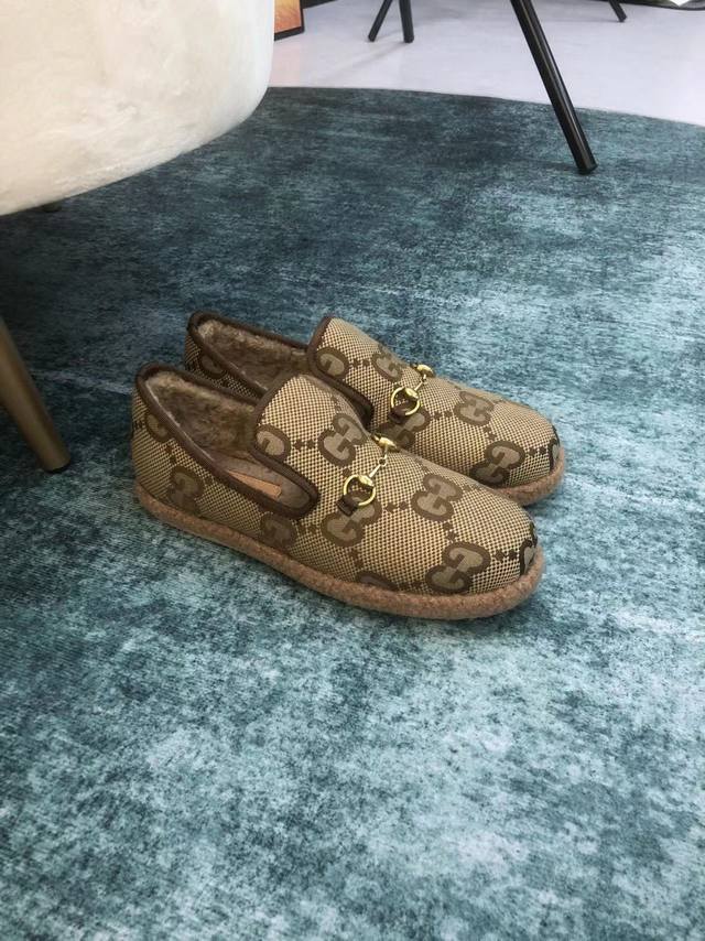 Gucci官网新款 女士 秋冬羊毛乐福鞋 毛呢面配五金澳洲羊皮毛一体泰迪卷羊毛内里 舒适保暖吸汗 ,码数 35#-41# 42码可定做