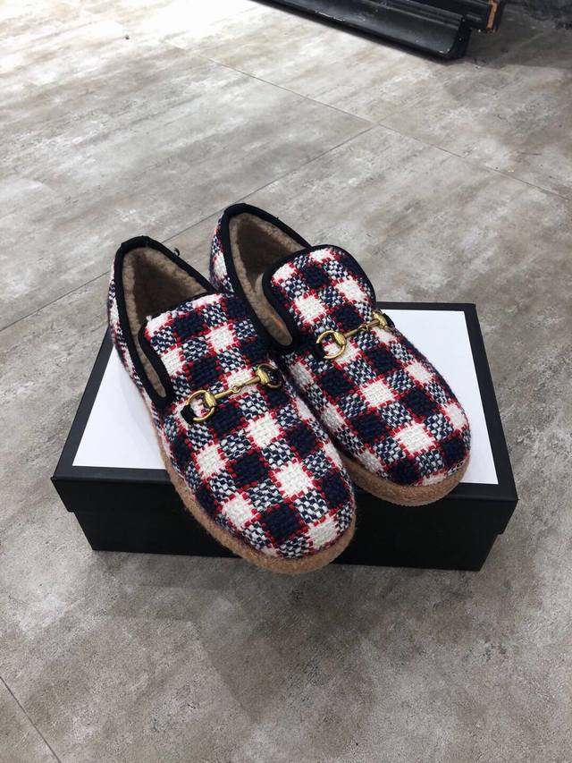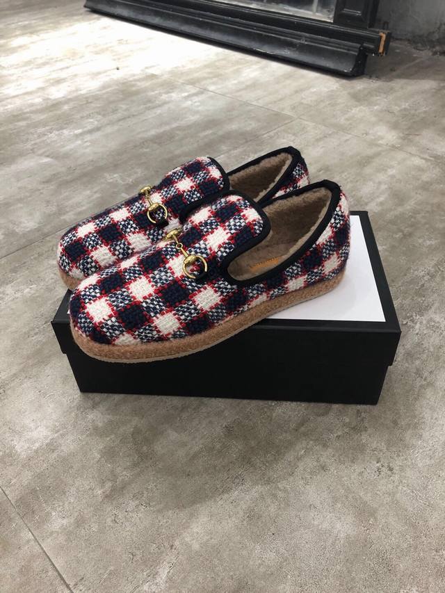 Gucci官网新款 女士 秋冬羊毛乐福鞋 毛呢面配五金澳洲羊皮毛一体泰迪卷羊毛内里 舒适保暖吸汗 ,6色可选,码数 35#-41# 42码可定做