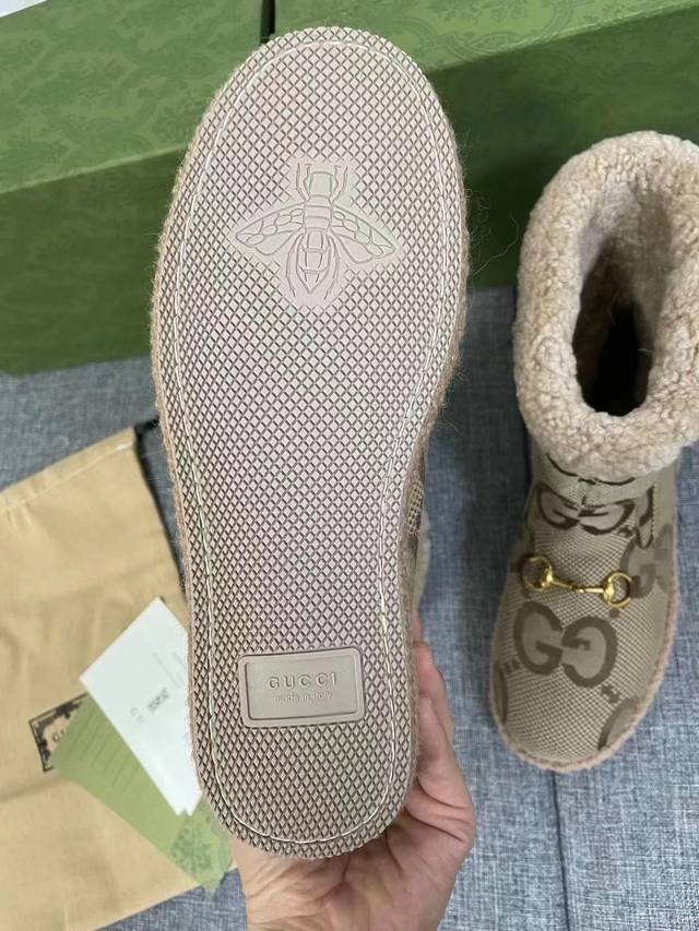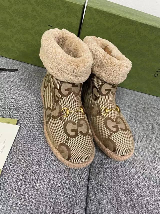 Gucci官网新款 女士 秋冬羊毛靴 毛呢面配五金澳洲羊皮毛一体泰迪卷羊毛内里 舒适保暖吸汗 ,码数 35#-41#