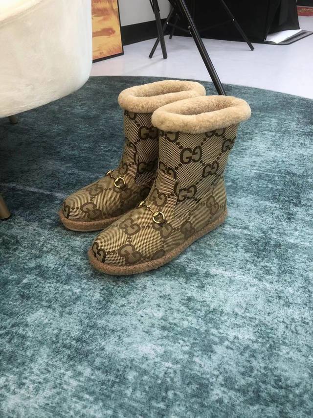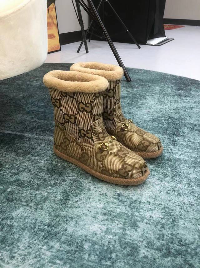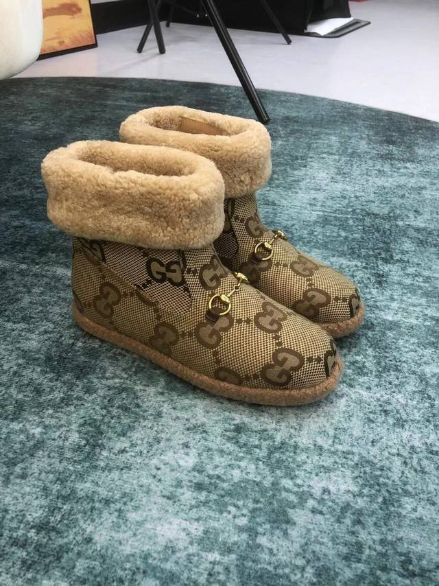 Gucci官网新款 女士 秋冬羊毛靴 毛呢面配五金澳洲羊皮毛一体泰迪卷羊毛内里 舒适保暖吸汗 ,码数 35#-41#