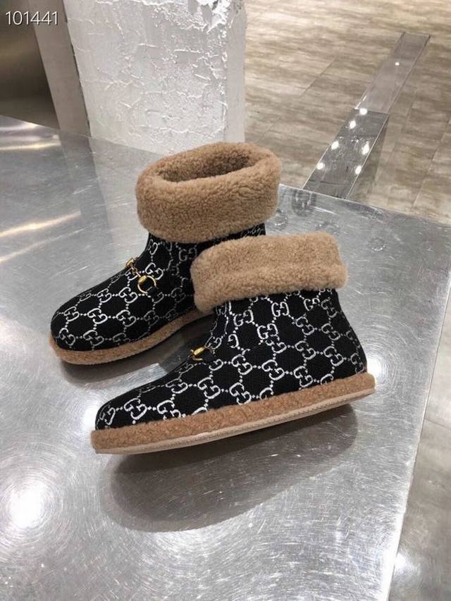 Gucci官网新款 女士 秋冬羊毛靴 毛呢面配五金澳洲羊皮毛一体泰迪卷羊毛内里 舒适保暖吸汗 ,4色可选,码数 35#-41#