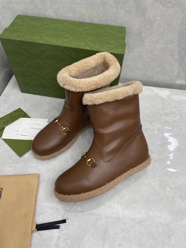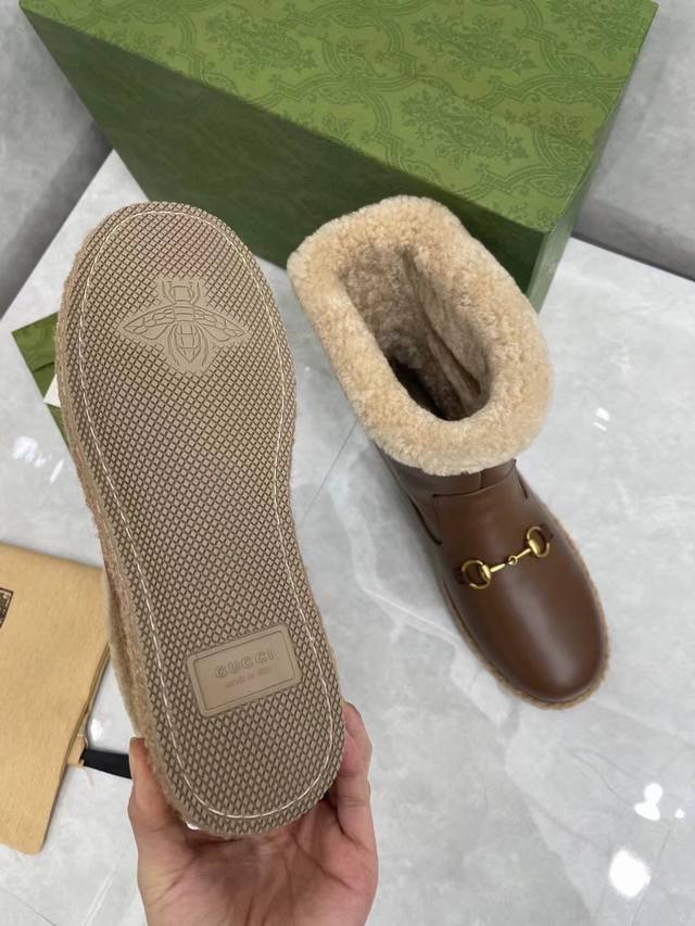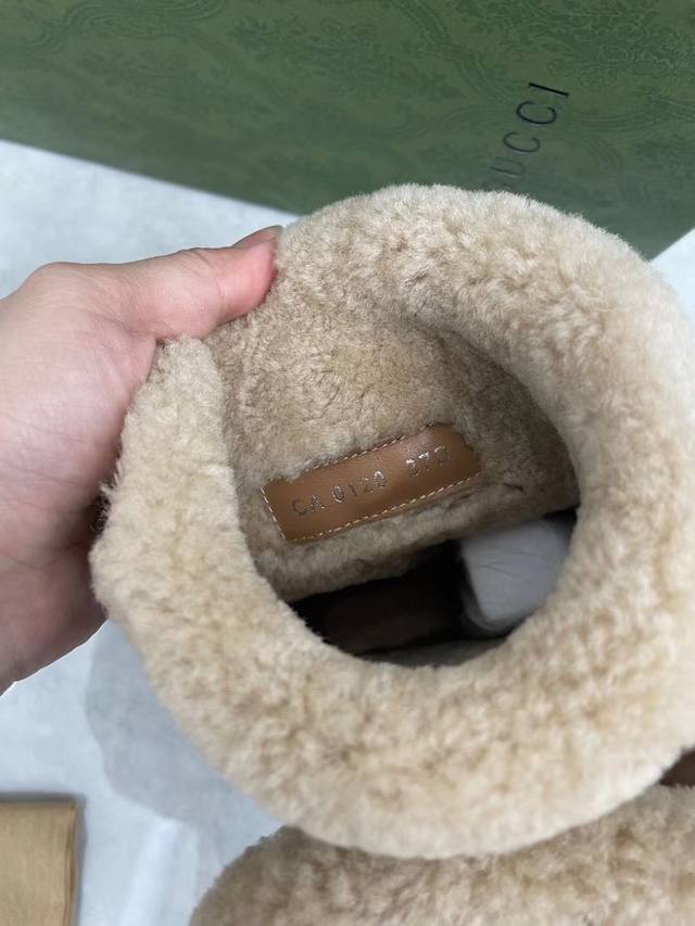 Gucci官网新款 女士 秋冬羊毛靴 牛皮面配五金澳洲羊皮毛一体泰迪卷羊毛内里 舒适保暖吸汗 ,码数 35#-41#