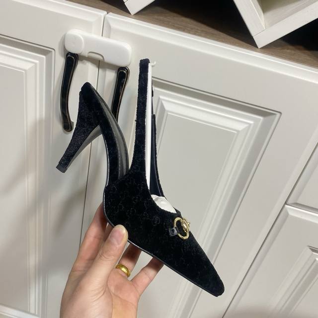FFF 丝绒黑 DDD DDD Gucci 古奇 马衔扣 高跟凉鞋,尖头凸显小性感,上脚非常显腿长而且显白 DDD 鞋面为丝绒布,里垫为绵羊皮,真皮大底,原版开模浅金马衔扣 DDD 跟高:8.5Cm DDD Size:35 39码 34.40.41.42.43订做,不退换 DDD