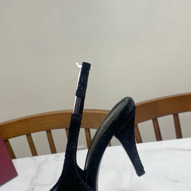 丝绒黑 DDD DDD Gucci 古奇 马衔扣 高跟凉鞋,尖头凸显小性感,上脚非常显腿长而且显白 DDD 鞋面为丝绒布,里垫为绵羊皮,真皮大底,原版开模浅金马