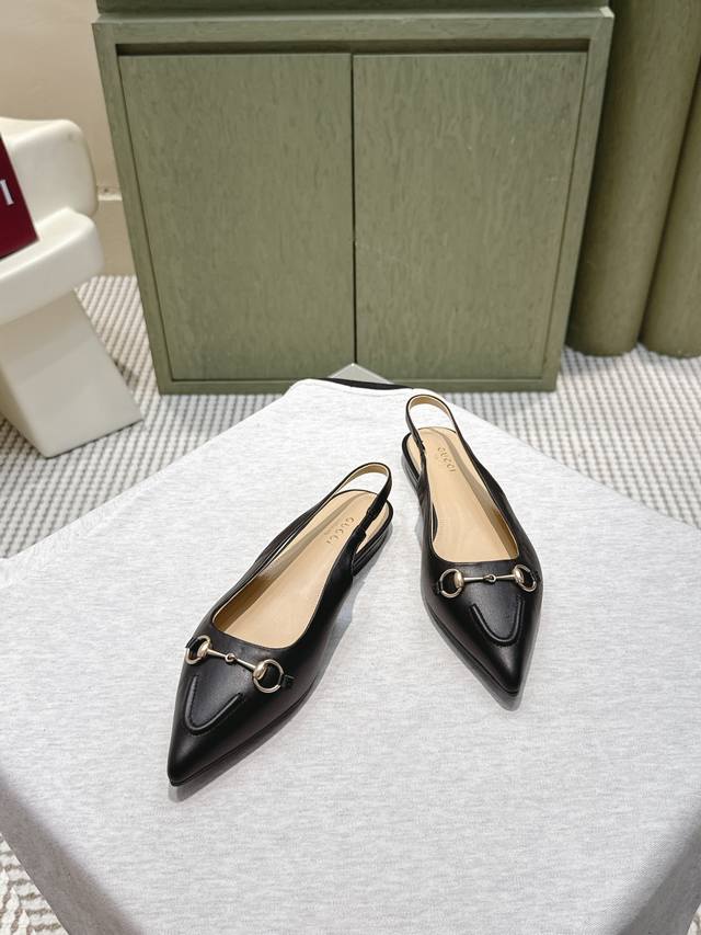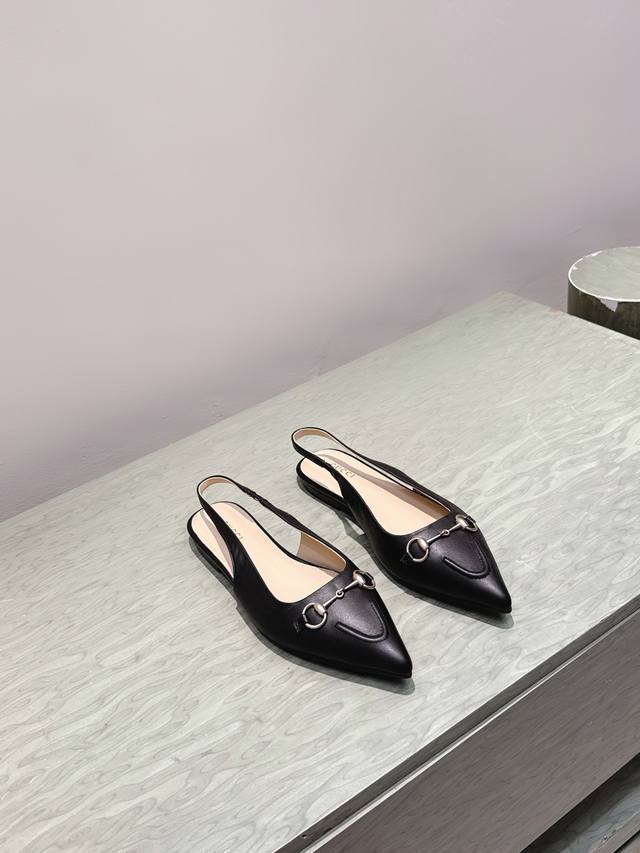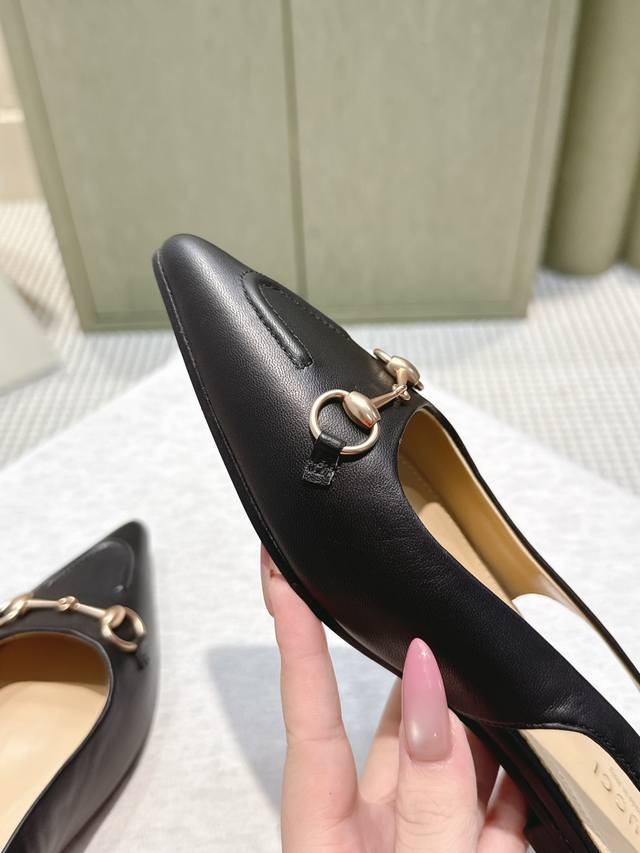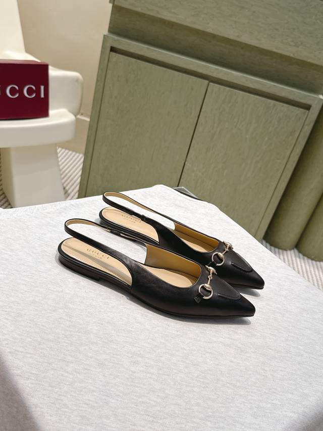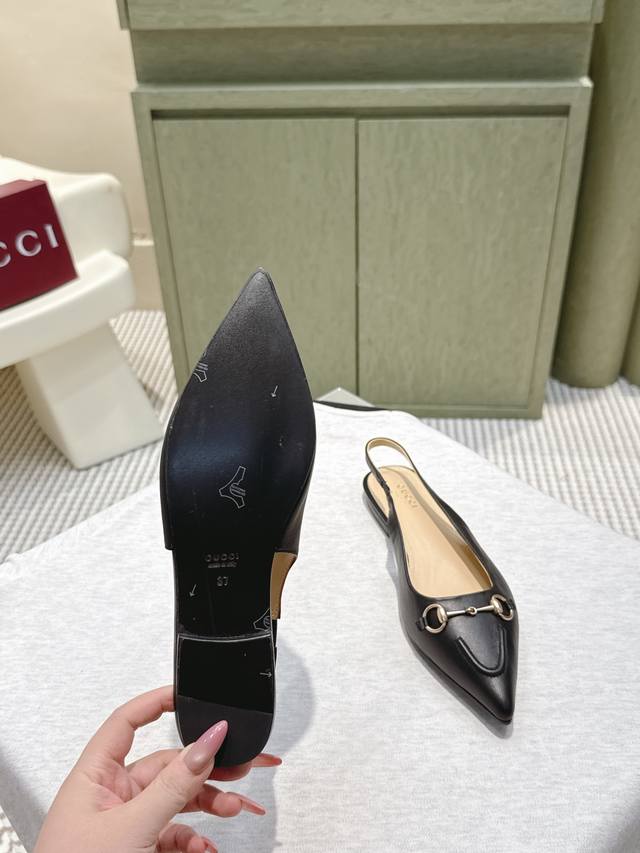 代购级 25S早春新品 New Arrival~Gucci春夏尖头凉鞋,也太出彩了!时尚性感舒适,拉满了夏日美鞋能给的满分情绪价值.鞋的造型也很乖巧好看呀! 鞋面选用进口小牛皮,羊皮内里,真皮大底! Size 35-39 40.41.42订做 高度:平底 全套专柜同步包装!