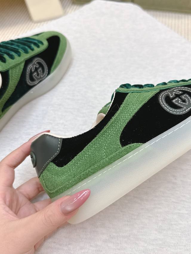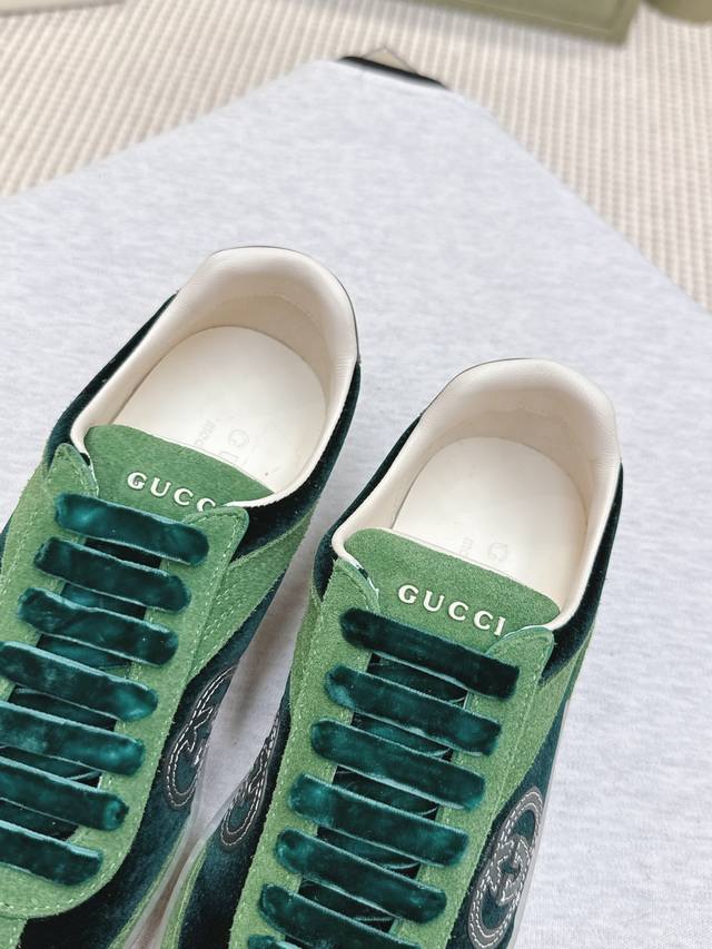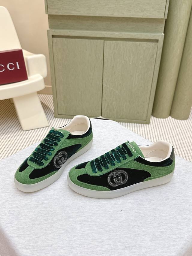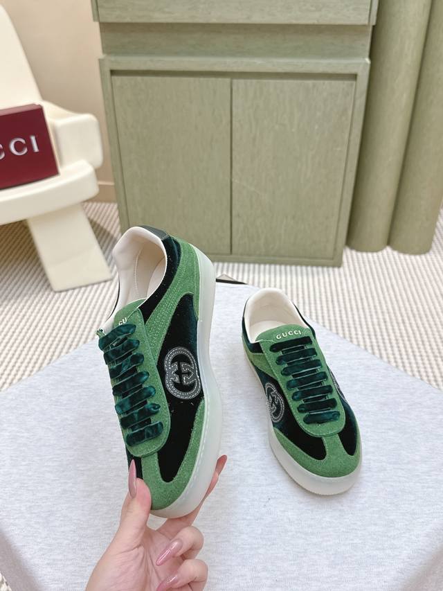 代购级 DDD Gucci古驰 最新款 双G 情侣款 休闲 运动鞋 德训鞋 阿甘鞋 DDD 鞋面采用创新缝线工艺制作 打造如水般的流动质感 皮革设计搭配三维立体互扣式双G皮革贴饰和Gucci字母配件 以3D效果成就整款鞋履自在的流动质感 DDD 配送专柜精美包装 DDD 面料:原版定制牛皮 丝绒 DDD 内里:原版进口羊皮 DDD 鞋底:原版开模Tpu材质 DDD 底厚:2.5Cm DDD 码数:女款35-39 男款40-44 DDD