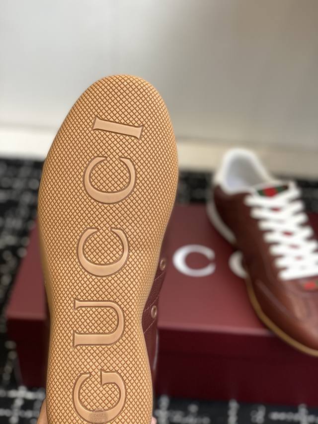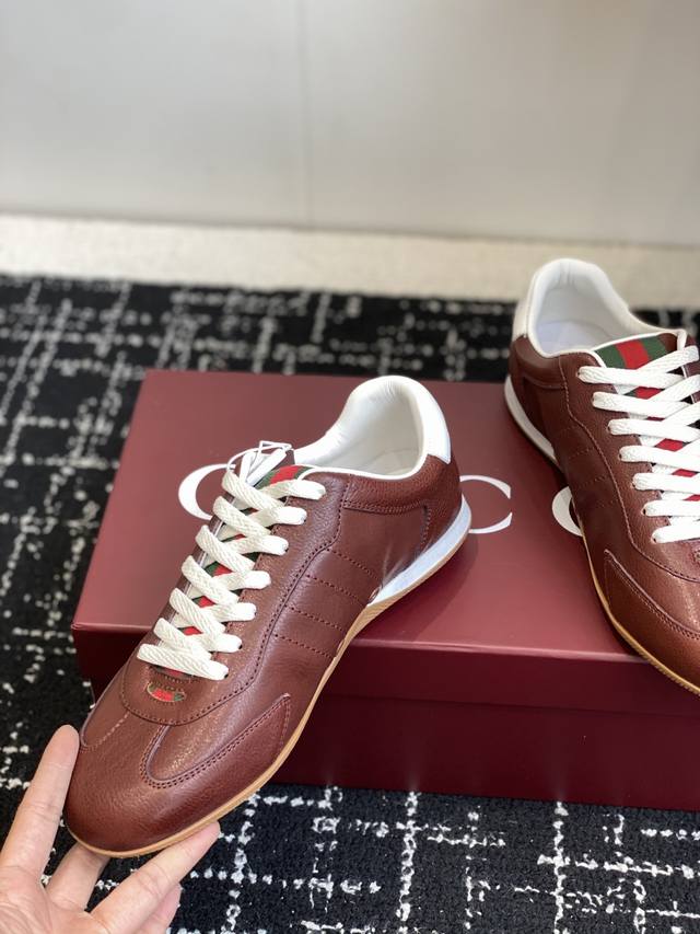 代购级 Gucci Shift2026走秀款系列情侣款德训薄底 运动鞋 Gucci Shift系列全新上市,轻盈设计焕新诠释运动风尚。利落廓形更添自在本色,行动间彰显精致质感。织带细节宛如一道延绵不绝的饰带贯穿于整个设计,侧边缝线细节增添点睛之笔。 原版一比一开发 水洗效果牛皮鞋面 双色Tpu大底 Size:35-45 45定做不退换
