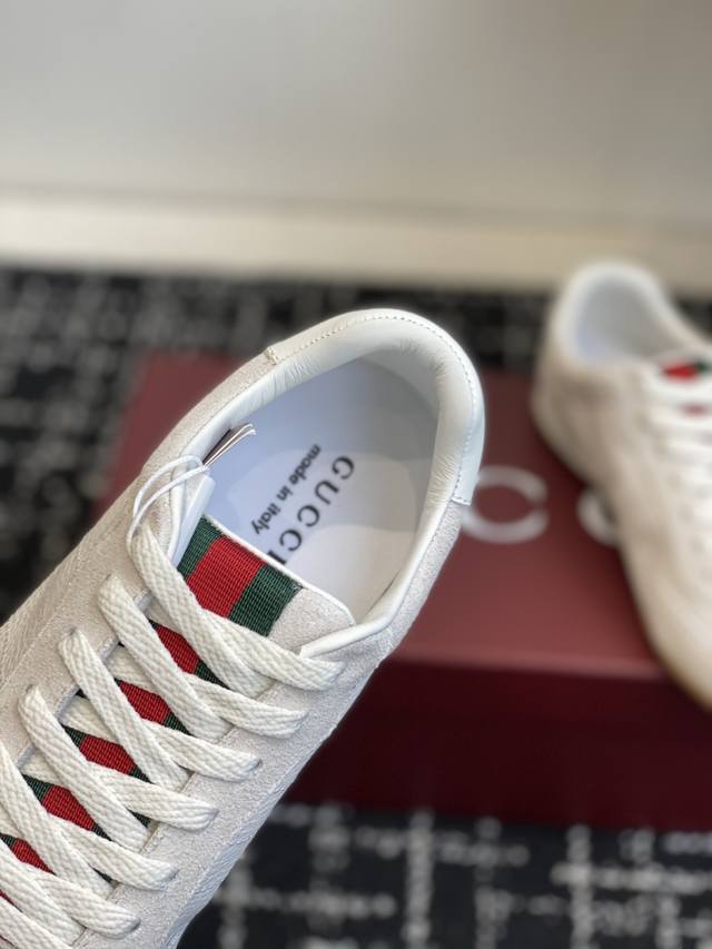 冲量价: Gucci春夏新款休闲运动小白鞋,代购版原版一比一开模Ip轻料底!鞋面小牛皮,内里牛皮,垫脚牛皮 全套代购版本...