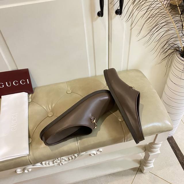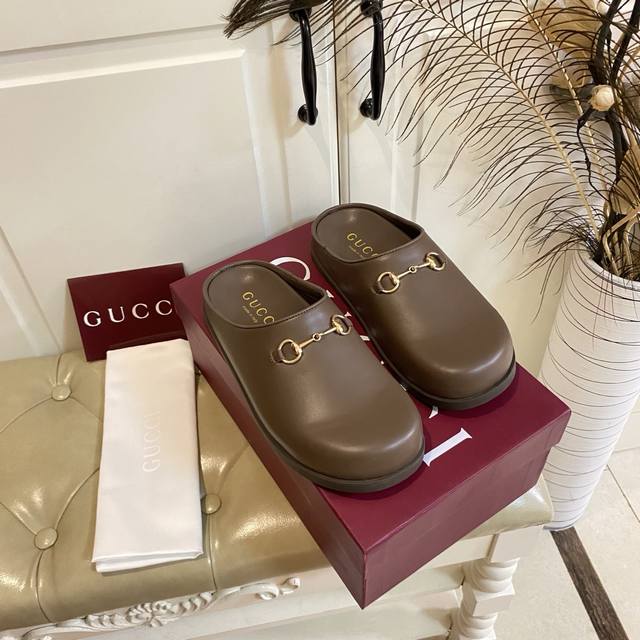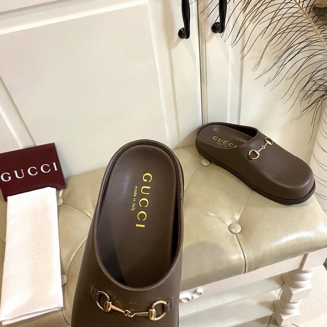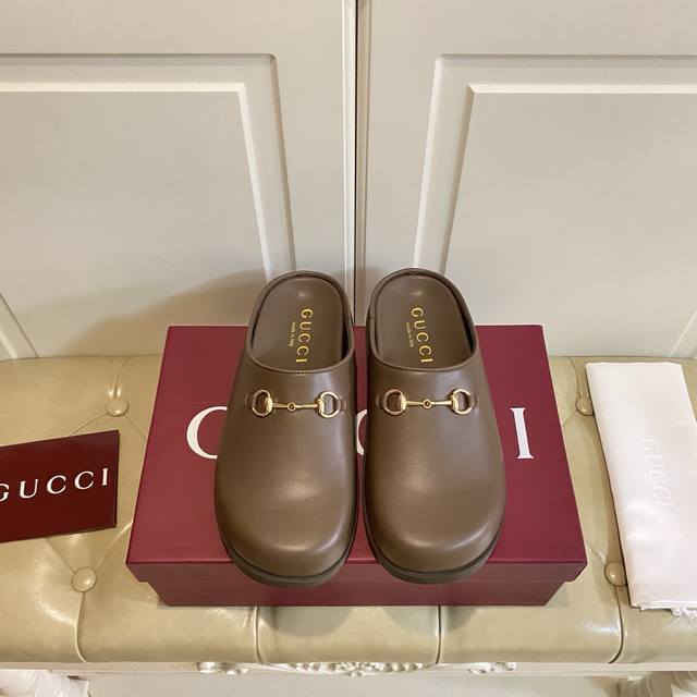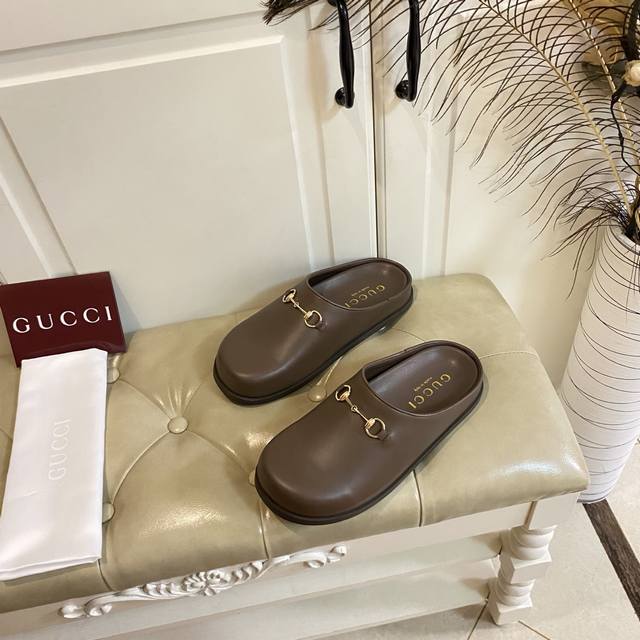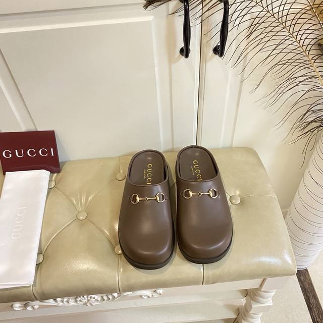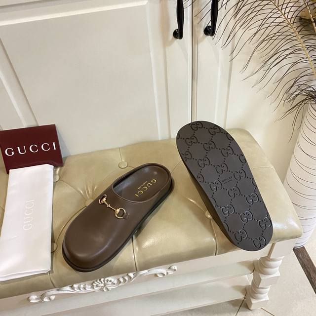 出厂价P ,古奇Gucci新款圆头穆勒拖鞋,反绒压花面,羊皮里,橡胶底,36-42码