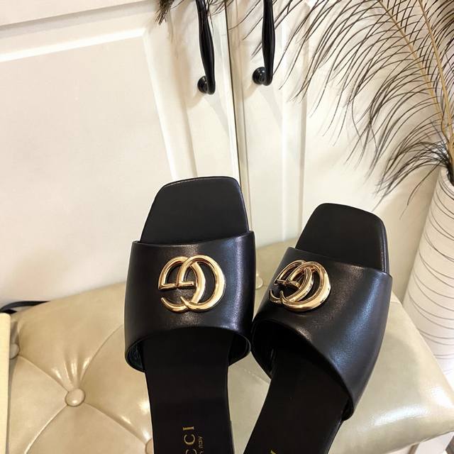 FFF 出厂价P ,古奇Gucci新款拖鞋,牛皮 提花布面,羊皮里,真皮大底,35-41码 42,43码定做不退换 DDD