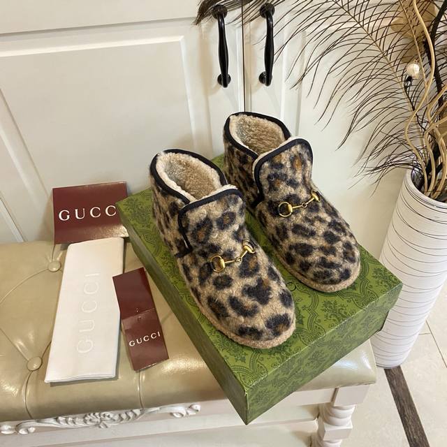出厂价p ,古奇Gucci新款毛靴,毛呢面,羊毛里,柔软舒适,橡胶底,36-42码