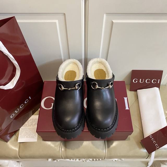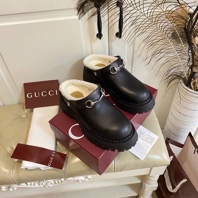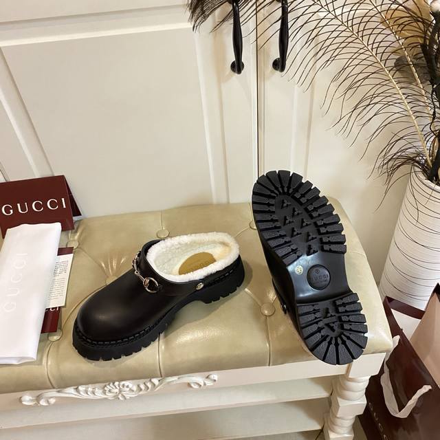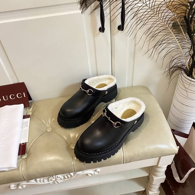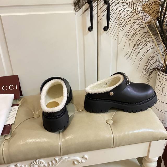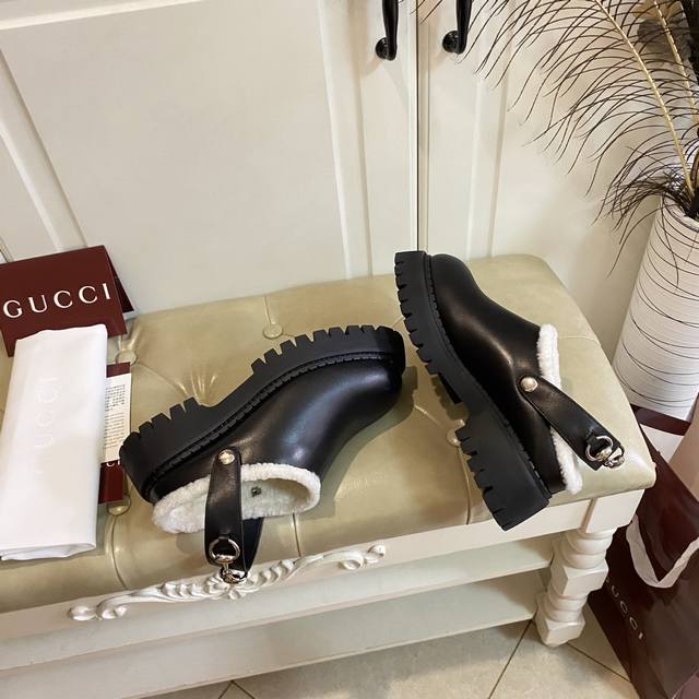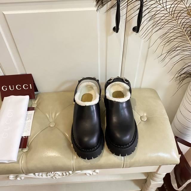 出厂价P ,高版本古奇Gucci新款,一鞋两种穿法,牛皮 牛反绒面,羊毛里,底厚5Cm,橡胶底,35-40码 41码定做不退换